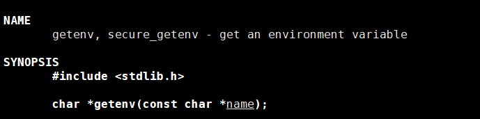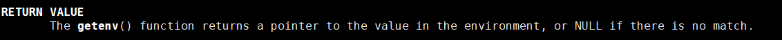 这句话的意思就是如果有这个环境变量就正常返回,如果找不到匹配的环境变量就返回NULL,我们来试一试:
