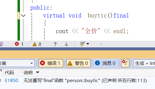 注意:在重写虚函数时,派生类的虚函数不加virtual关键字时也可以构成重写,但这种写法不是很规范,不建议用。