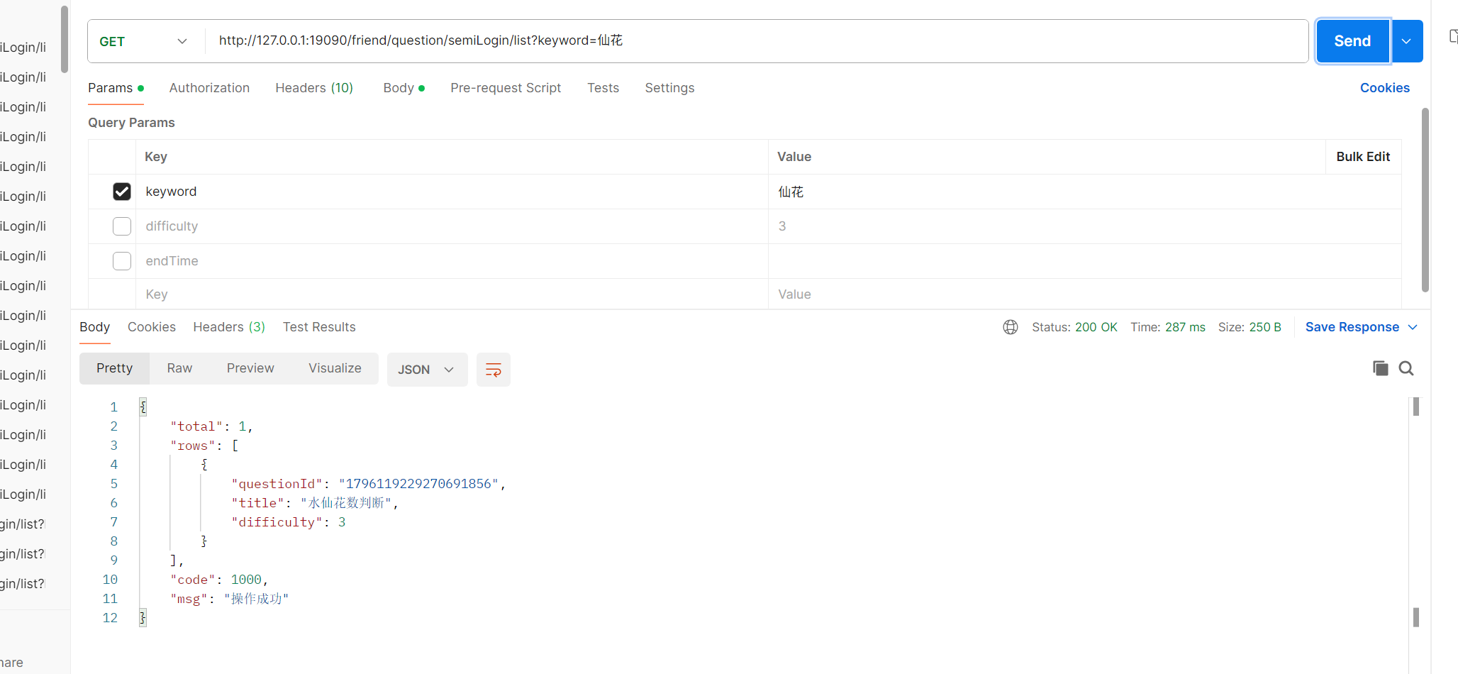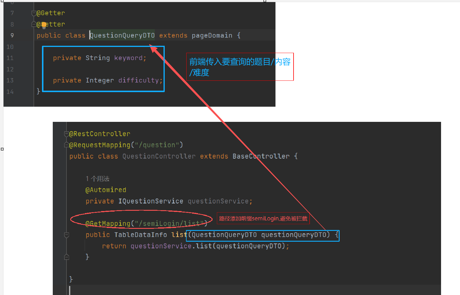 checkLogin()async function getQuestionList() {const result = await getQuestionListService(params)questionList.value = result.rowstotal.value = result.total