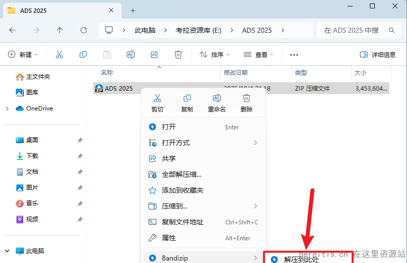 1.下载完成后,鼠标右击【Advanced Design System 2025】压缩包,选择【解压至此处】