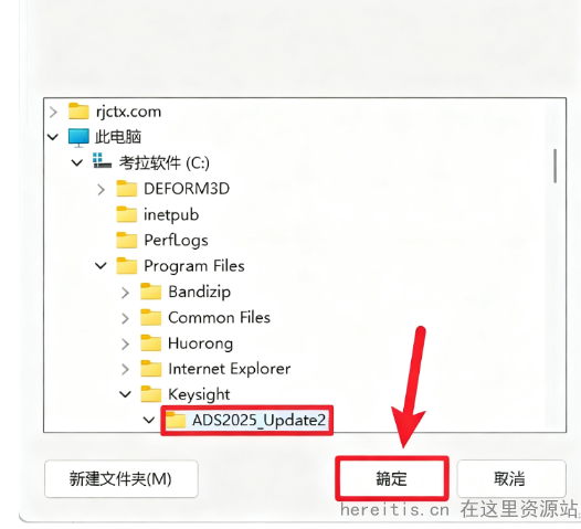 19.打开步骤8修改的软件安装位置【如:C:\Program Files\Keysight】并选中【ADS2025_Update2】文件夹,点击【确定】