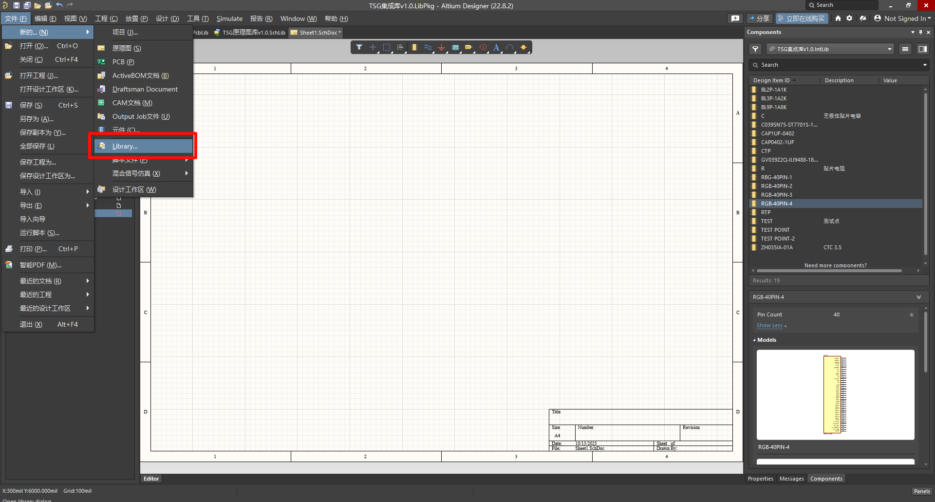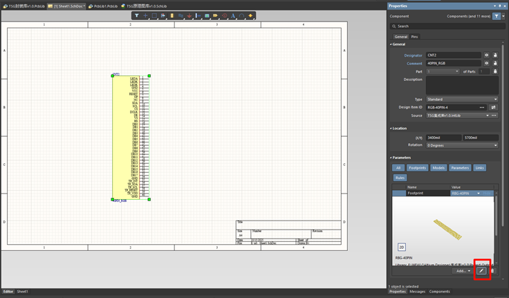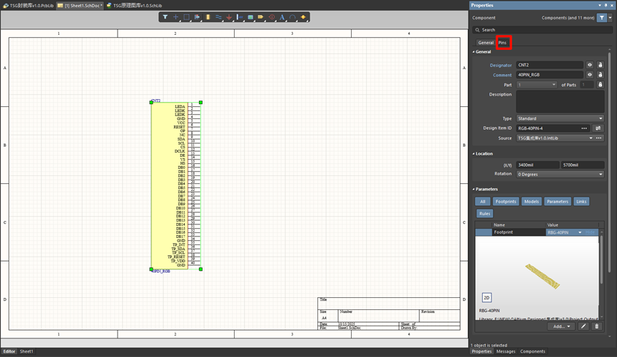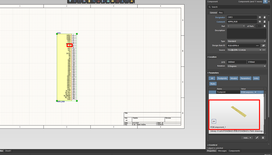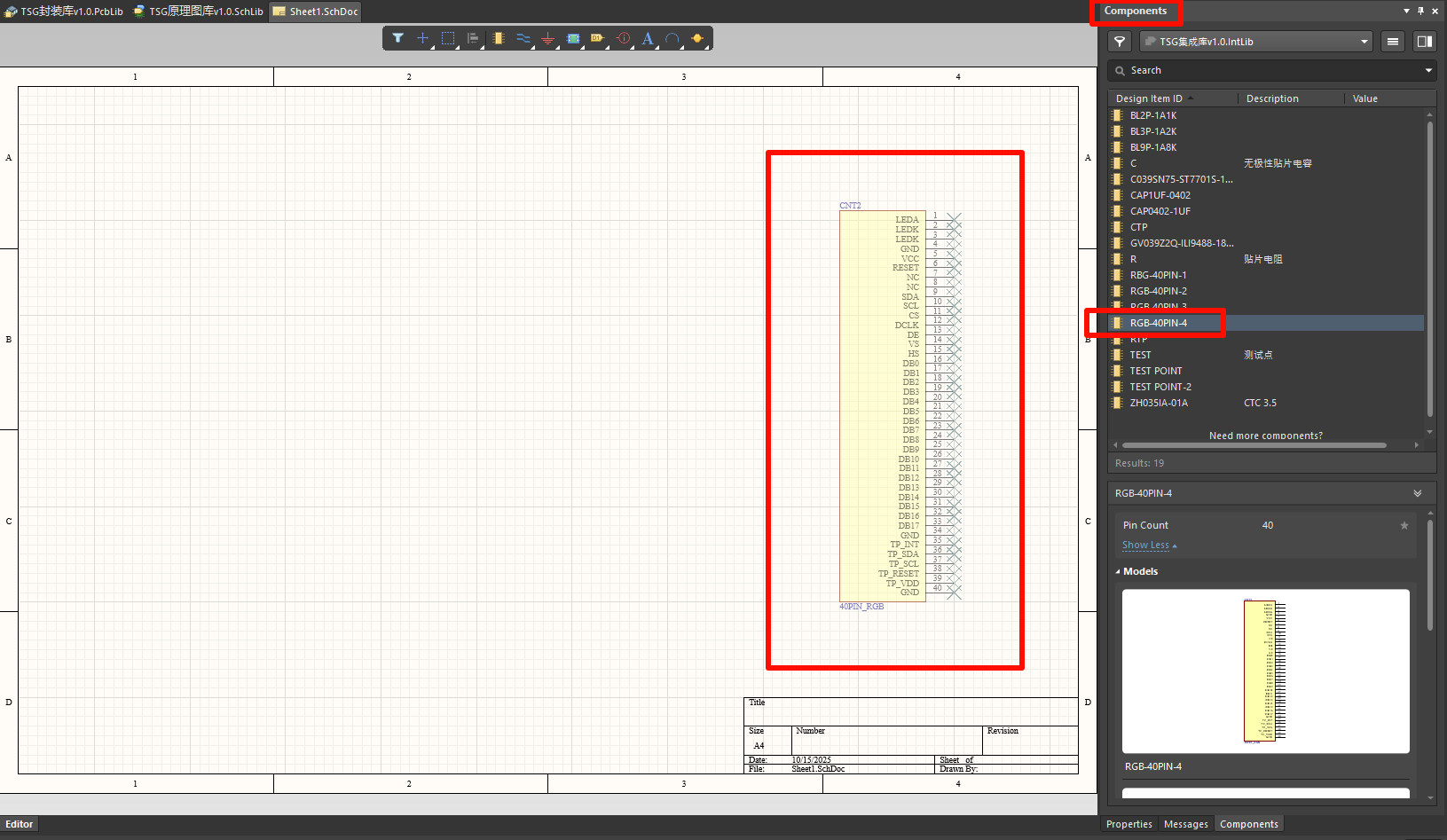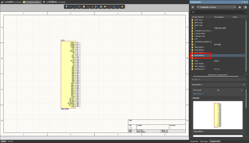 例如,在空白原理图中导入元器件“RGB-40PIN-4”