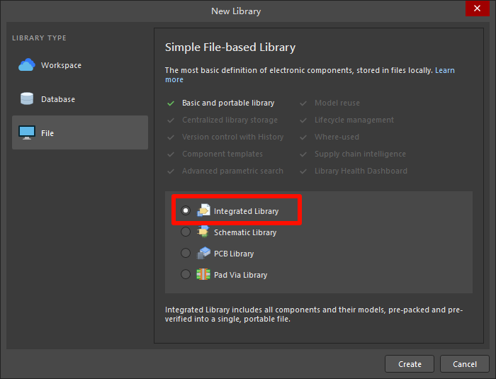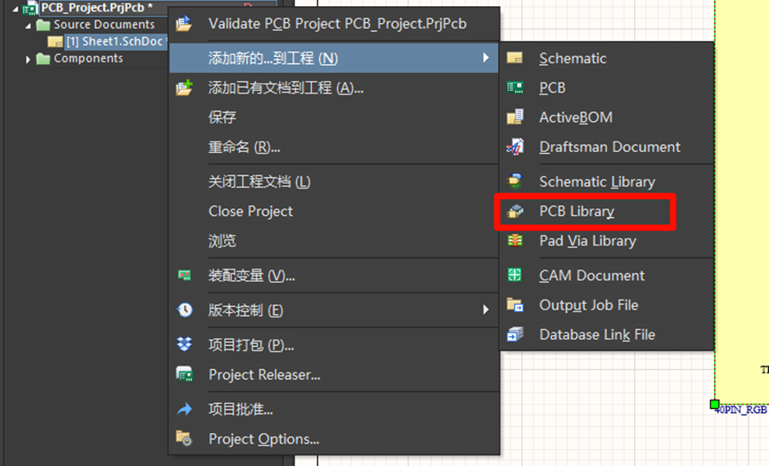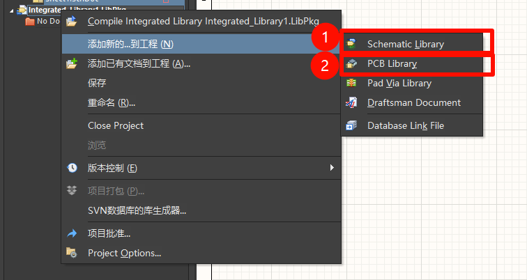 在新建的集成库内添加原理图库Schematlc Lbrary和封装库PCB Library