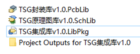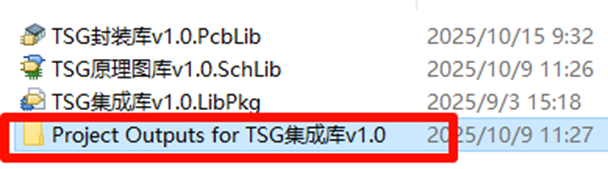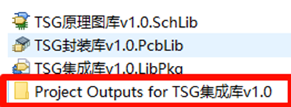 打包好的库文件会被放入TSG集成库v1.0.LibPkg所在文件夹中的Project Outputs for TSG集成库v1.0文件夹内。