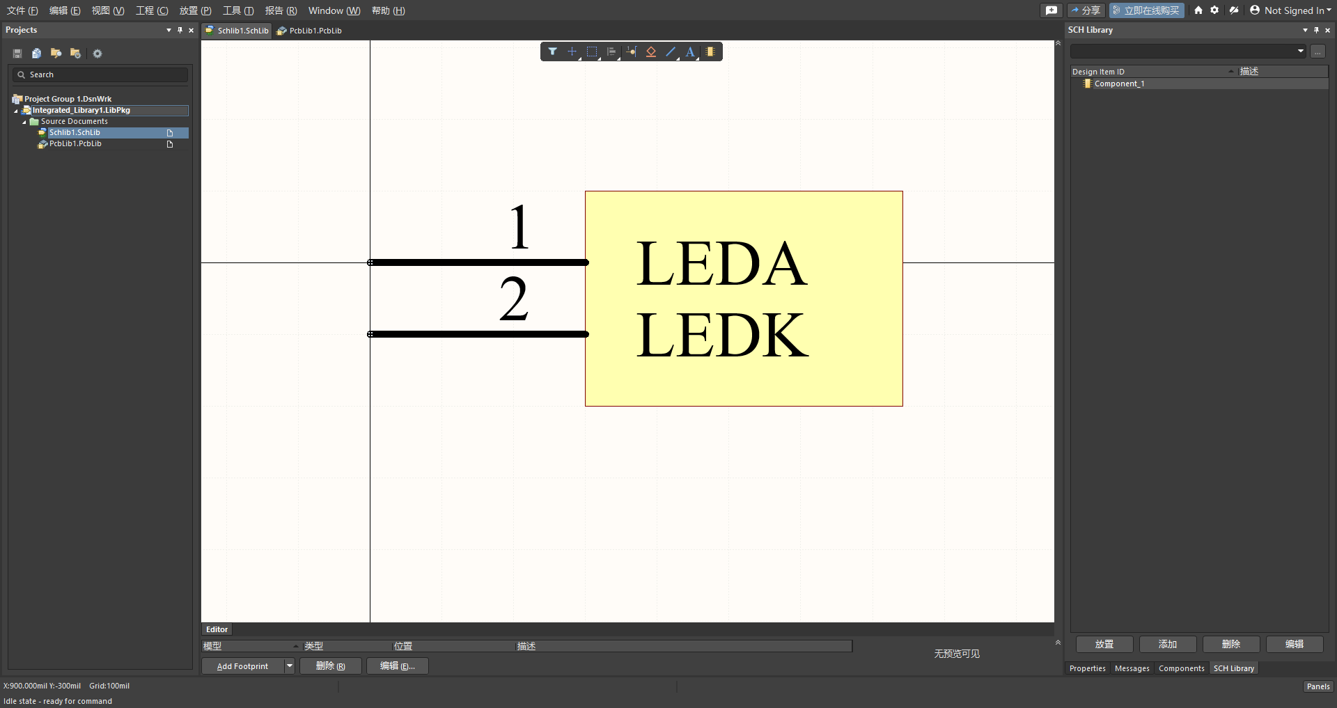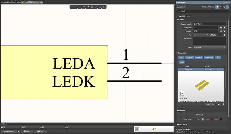 添加好后如图所示,即可在原理图库和封装库中编辑元器件与封装。