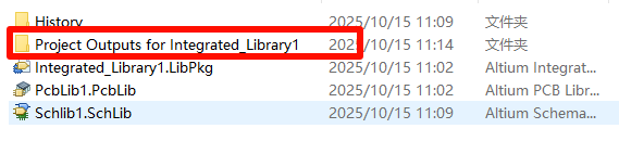 再将原理图库和封装库打包为“.intlib”集成库文件,鼠标右键单击.Libpkg,鼠标左键单击Compile,则集成库就打包好了,并被放在与.Libpkg所在文件夹的Project Outputs for Integrated_Library1文件夹中。(文件夹中的History文件夹可以删除)