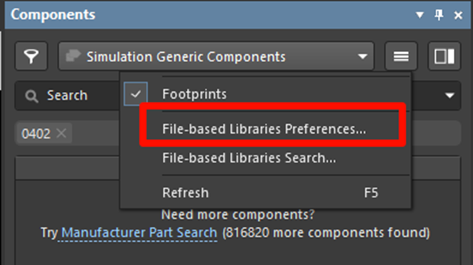 假如库中该封装的尺寸不符合当前项目需求,则新建一个PCB library。