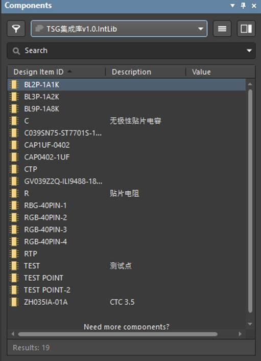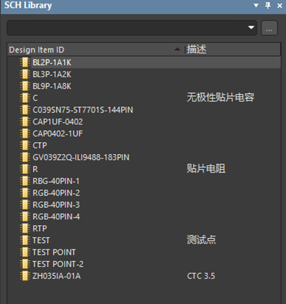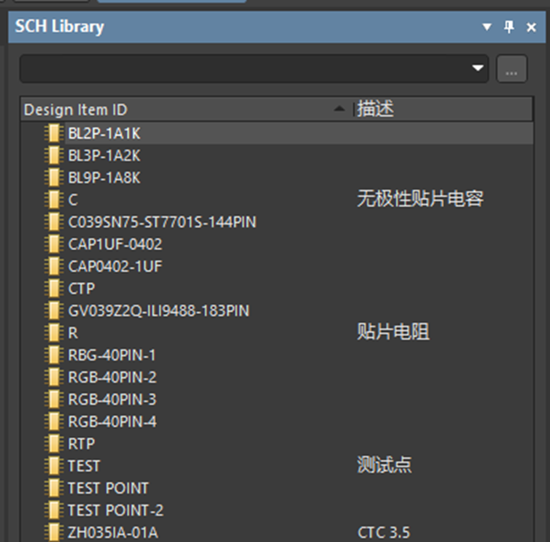 安装好的集成库如图所示,可以直接选择器件到原理图中使用。