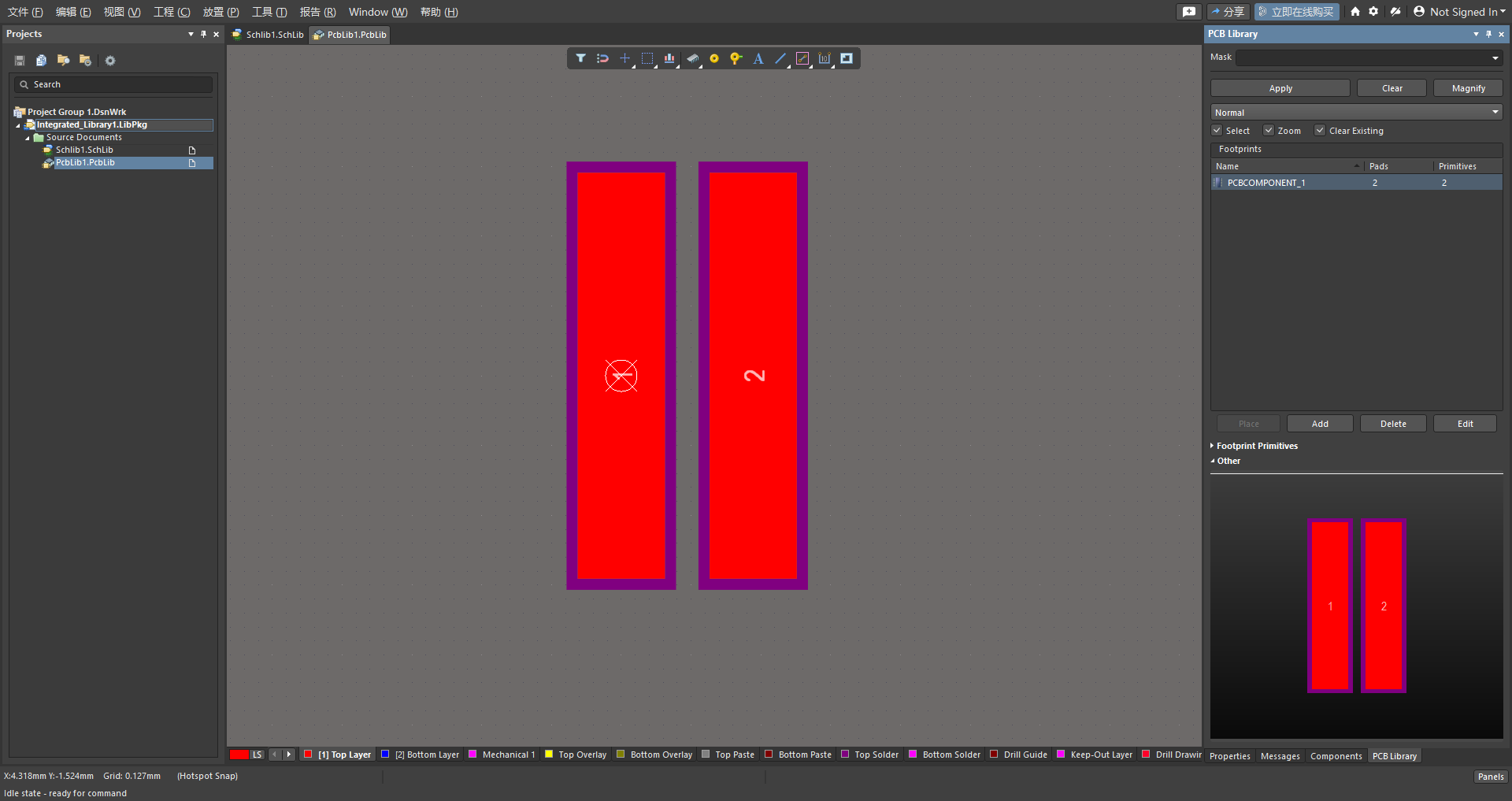 有一些元器件如0402电容、电阻、测试点、芯片、背光焊盘在不同的项目中是通用的,每次新建项目都需要重新重新制作原理图库schlib文件和封装库pcblib文件比较麻烦,为提高工作效率,则制作自己的AD集成库,安装库后,可以直接从库中选。