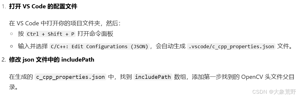 {"configurations": [{"name": "Linux", // 环境名称,默认Linux即可"includePath": ["${workspaceFolder}/**", // 包含项目自身所有目录的头文件"/usr/include/opencv4" // 关键:添加OpenCV 4.x的头文件父目录],"defines": [],"compilerPath": "/usr/bin/g++", // 你的g++编译器路径(默认通常是这个)"cStandard": "c11","cppStandard": "c++11", // 与之前编译命令的-std=c++11对应"intelliSenseMode": "linux-gcc-x64" // 适配Linux的GCC编译器}],"version": 4
