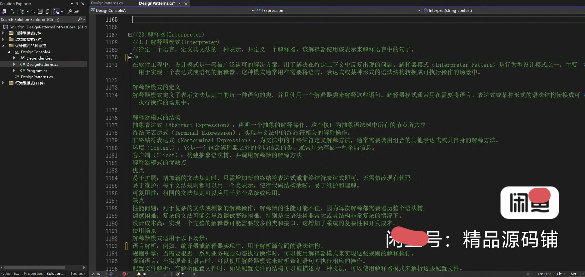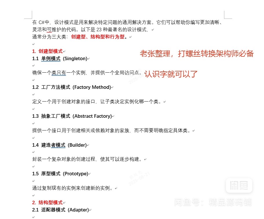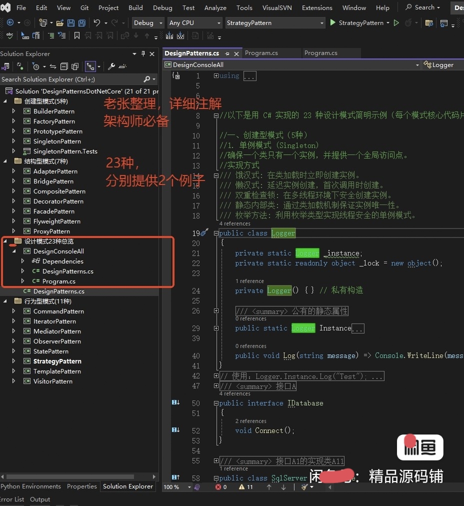 C#设计模式源码合集,包含23种设计模式完整源码,每个模式都有详细注释和实例代码。