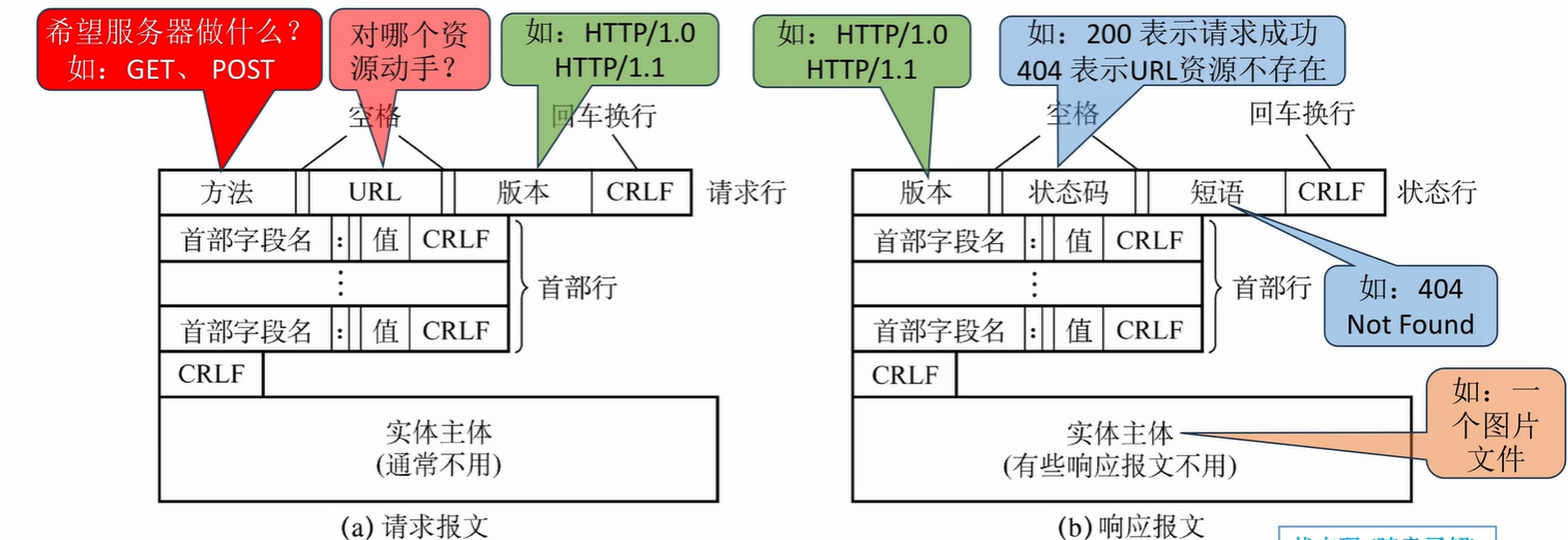 - 应用层,基于 TCP。HTTP 协议定义了 “HTTP 请求报文”、“HTTP 响应报文” 两种数据结构