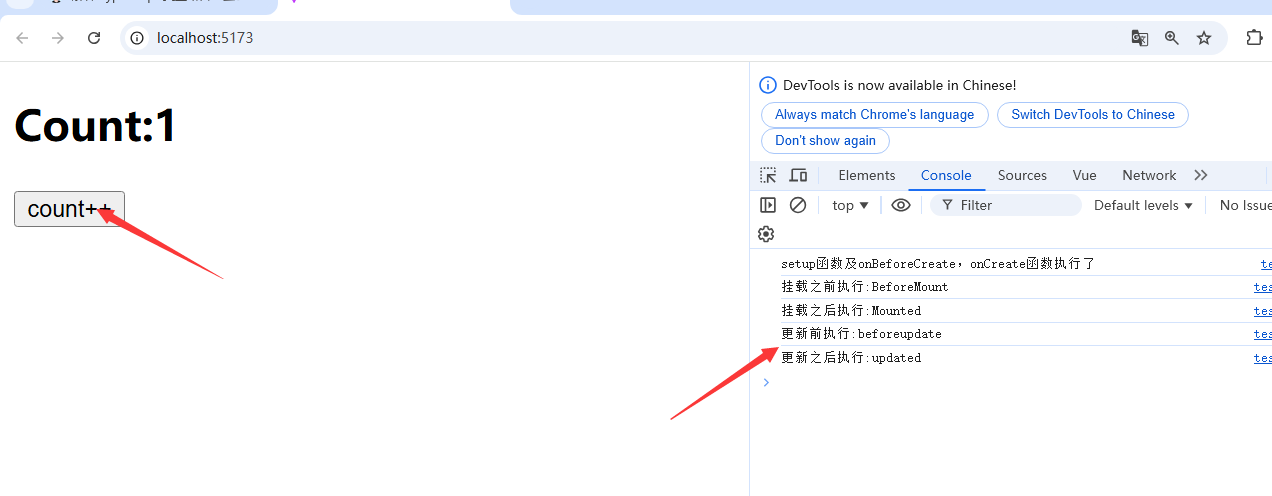 onUpdated(() => {console.log('更新之后执行:updated');