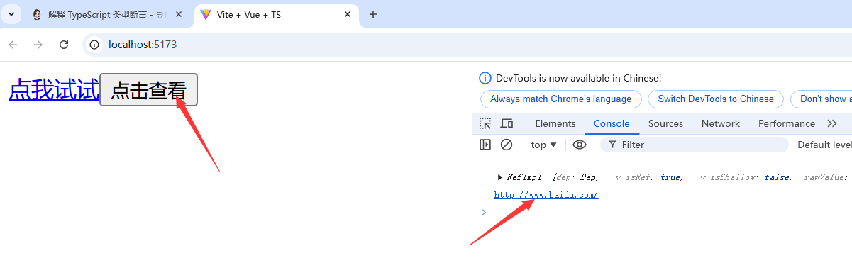 <template><a ref="url" href="http://www.baidu.com">点我试试</a><button @click="show">点击查看</button></template>