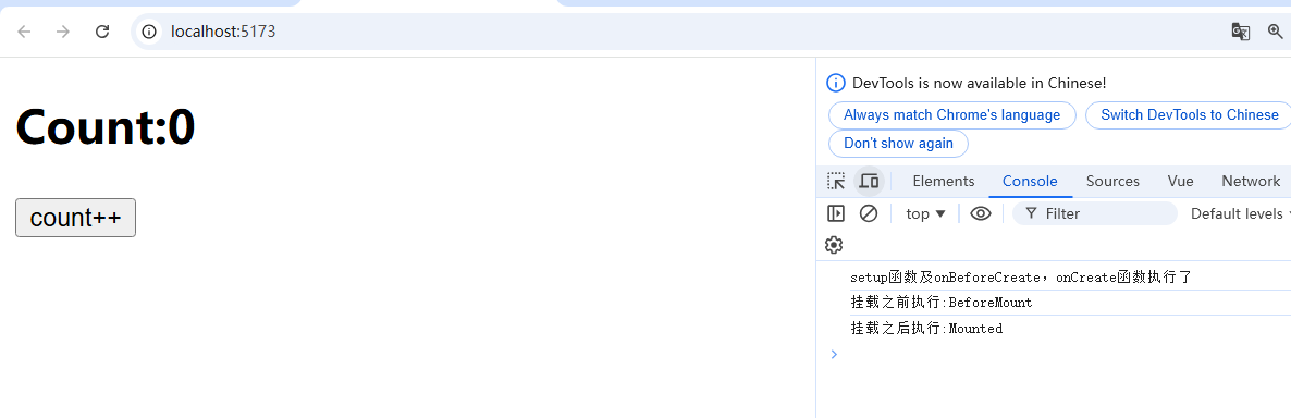 };onBeforeMount(() => {console.log('挂载之前执行:BeforeMount');