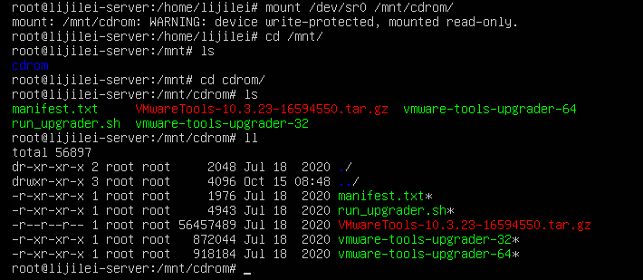 可以看到当前挂载的光盘是只读的,需要将文件拷贝出来