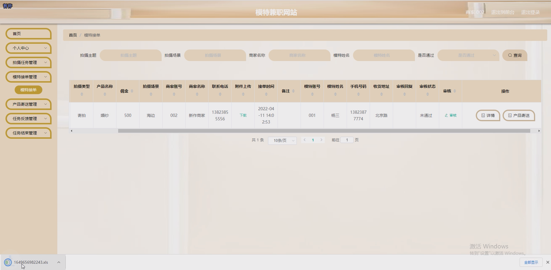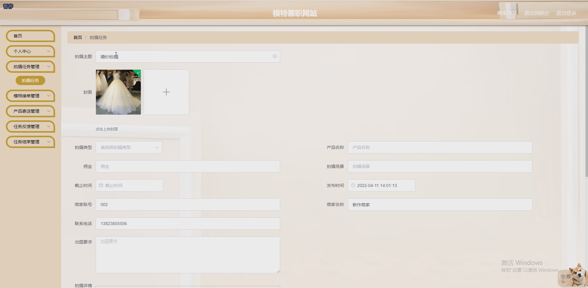 - 对模特而言:模特能够在网站上便捷地浏览各类拍摄任务,根据自身条件和需求接单,清晰了解任务要求和产品寄送信息,及时提交任务成果并获取反馈,拓宽兼职渠道,增加收入来源,同时提升自身的职业发展机会。