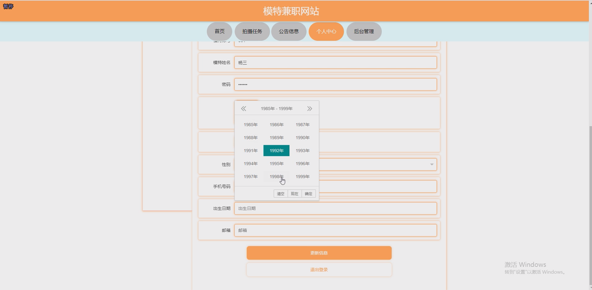 - 模特使用注册时的邮箱或联系电话和密码进行登录,登录成功后进入模特个人中心页面;若登录失败,系统提示错误信息。同样提供 “忘记密码” 功能,模特可通过邮箱验证重置密码。