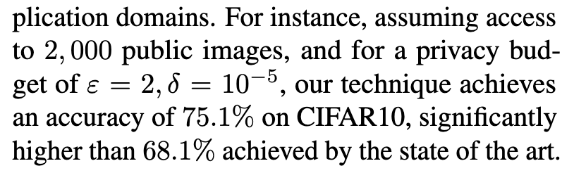 **背景**:DP会降低效用,有工作表明,在保证DP训练模型时候,利用公共数据可以提高隐私和效用的权衡。