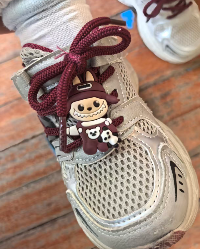 就把这个刚才的那个灰色拉布布还给24号,并扣在鞋子上。