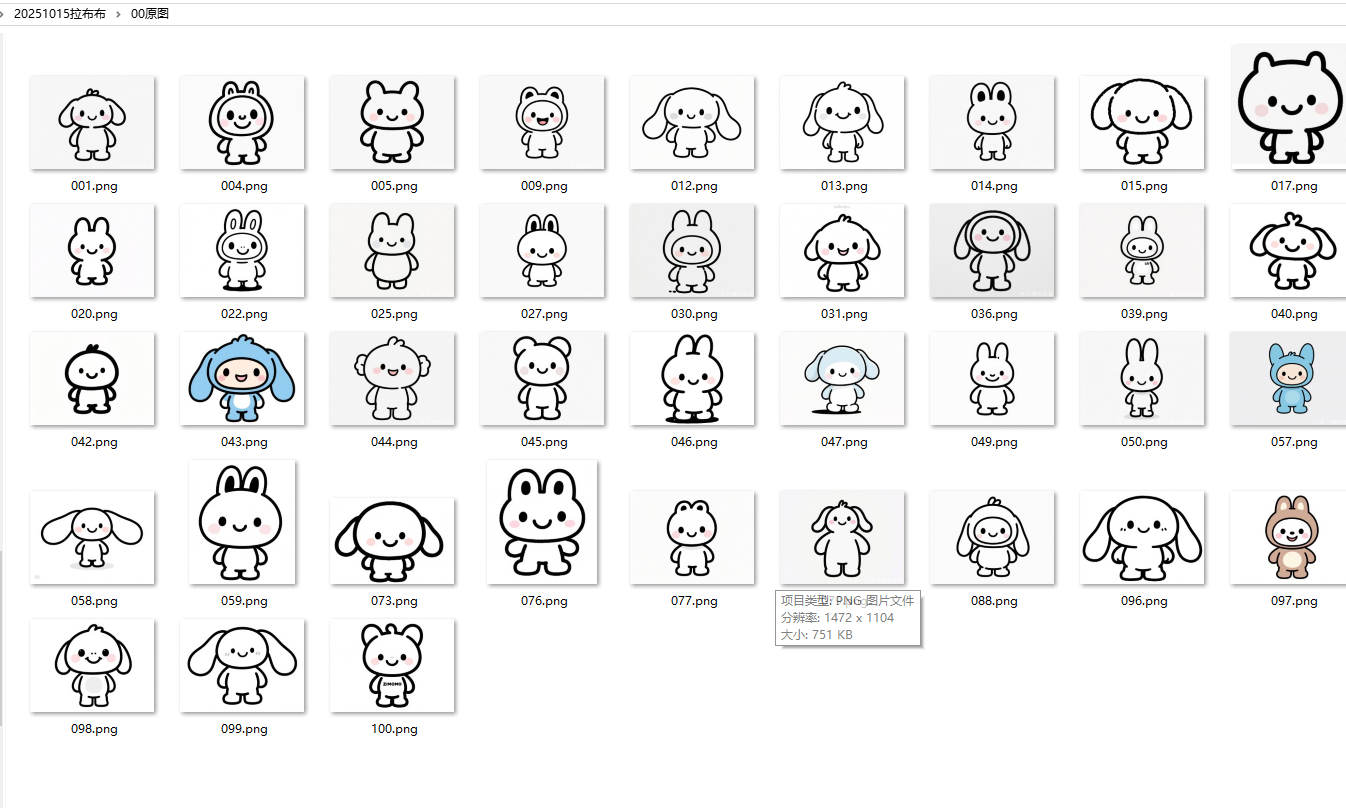 简笔画,卡通。白色背景,一个拉布布Labubu,Labubu,微笑,正面全身图,