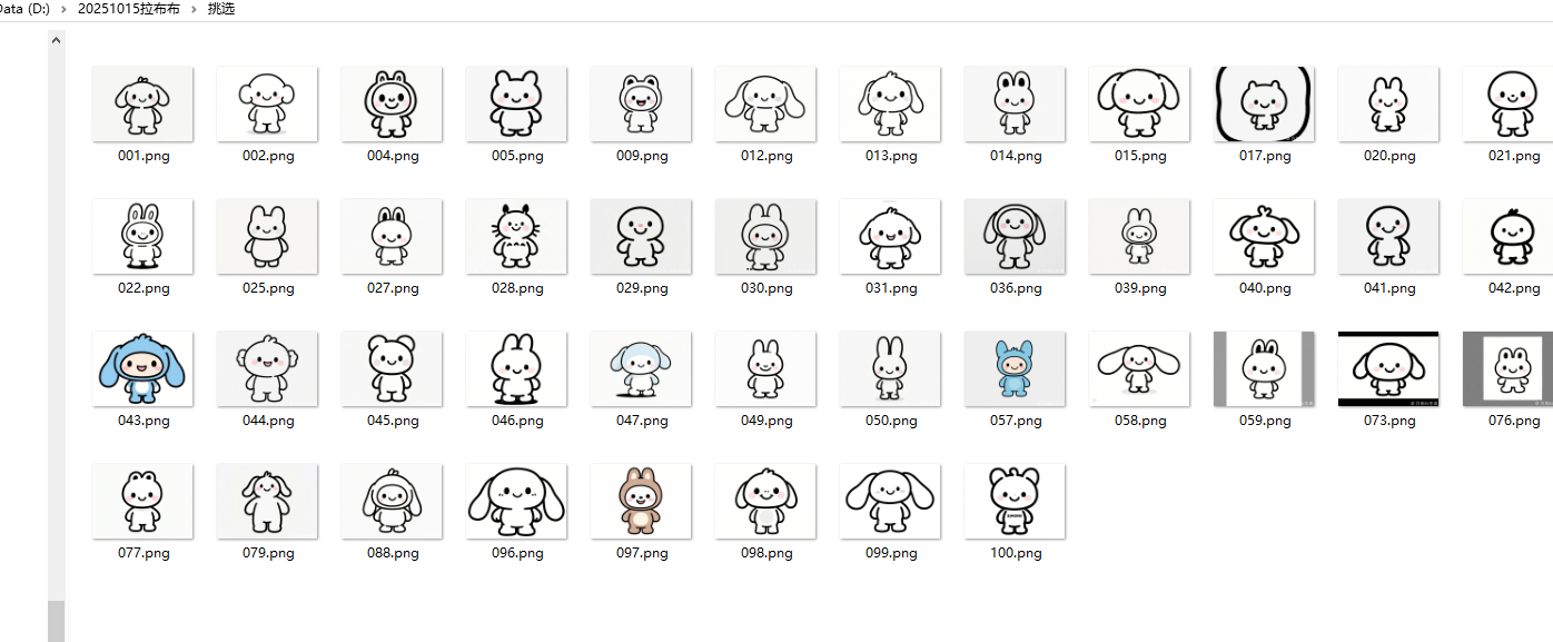 import numpy as npdef convert_to_pure_bw(image_path, output_path, threshold=128):"""将图片转为纯黑白两色(黑色0,0,0和白色255,255,255)参数:image_path: 输入图片路径output_path: 输出图片路径threshold: 二值化阈值"""try:img = Image.open(image_path)img = img.convert('L') # 转为灰度图# 二值化处理binary_img = img.point(lambda x: 0 if x < threshold else 255, '1')binary_img = binary_img.convert('RGB') # 转回RGB模式# 保存黑白图片binary_img.save(output_path)print(f"黑白图生成: {os.path.basename(image_path)}")return output_pathexcept Exception as e:print(f"处理图片 {image_path} 时出错: {str(e)}")return Nonedef crop_transparent_edges(image, margin=0):"""裁剪掉图片的透明边缘,并保留指定的间距参数:image: PIL Image对象(RGBA模式)margin: 要保留的间距(磅/像素)返回:裁剪后的PIL Image对象"""# 转换为numpy数组data = np.array(image)# 获取alpha通道alpha = data[:, :, 3]# 找到非透明像素的位置non_transparent = np.where(alpha > 0)if len(non_transparent[0]) == 0:# 如果全是透明像素,返回原图return image# 获取非透明区域的边界top = np.min(non_transparent[0])bottom = np.max(non_transparent[0])left = np.min(non_transparent[1])right = np.max(non_transparent[1])# 添加间距top = max(0, top - margin)bottom = min(image.height - 1, bottom + margin)left = max(0, left - margin)right = min(image.width - 1, right + margin)# 裁剪图片cropped_image = image.crop((left, top, right + 1, bottom + 1))return cropped_imagedef make_background_transparent(bw_image_path, output_path, tolerance=30, margin=0):"""将黑白图片的白色背景变为透明并裁剪透明边缘参数:bw_image_path: 黑白图片路径output_path: 输出图片路径tolerance: 颜色容差,控制背景识别的灵敏度margin: 裁剪后保留的间距(磅/像素)"""# 打开黑白图片并转换为RGBA模式with Image.open(bw_image_path) as img:# 转换为RGBA模式img = img.convert('RGBA')# 获取图片数据data = np.array(img)red, green, blue, alpha = data.T# 创建白色背景掩码:判断像素是否为白色(在容差范围内)white_mask = ((red >= 255 - tolerance) & (red <= 255) &(green >= 255 - tolerance) & (green <= 255) &(blue >= 255 - tolerance) & (blue <= 255))# 将白色背景像素的alpha通道设为0(透明)data[white_mask.T] = (255, 255, 255, 0)# 转换回Imageresult = Image.fromarray(data)# 裁剪透明边缘并保留间距cropped_result = crop_transparent_edges(result, margin)# 保存结果cropped_result.save(output_path, 'PNG')def resize_to_exact_size(image_path, output_path, target_size=(200, 200)):"""将图片拉伸到精确的200×200尺寸参数:image_path: 输入图片路径output_path: 输出图片路径target_size: 目标尺寸 (宽, 高)"""with Image.open(image_path) as img:if img.mode != 'RGBA':img = img.convert('RGBA')# 直接拉伸到目标尺寸resized_img = img.resize(target_size, Image.Resampling.LANCZOS)# 保存结果resized_img.save(output_path, 'PNG')def process_single_image(image_path, output_path, bw_threshold=128, transparency_tolerance=30, margin=0, target_size=(200, 200)):"""完整处理单张图片:黑白化 → 透明化 → 精确拉伸到200×200参数:image_path: 输入图片路径output_path: 输出图片路径bw_threshold: 黑白化阈值transparency_tolerance: 透明化容差margin: 裁剪边距target_size: 目标尺寸"""try:# 步骤1: 转为黑白图片(临时文件)temp_bw_path = output_path.replace('.png', '_bw_temp.png')bw_path = convert_to_pure_bw(image_path, temp_bw_path, bw_threshold)if not bw_path:return False# 步骤2: 背景透明化(临时文件)temp_transparent_path = output_path.replace('.png', '_trans_temp.png')make_background_transparent(bw_path, temp_transparent_path, transparency_tolerance, margin)# 步骤3: 精确拉伸到目标尺寸resize_to_exact_size(temp_transparent_path, output_path, target_size)# 清理临时文件if os.path.exists(temp_bw_path):os.remove(temp_bw_path)if os.path.exists(temp_transparent_path):os.remove(temp_transparent_path)return Trueexcept Exception as e:print(f"处理图片 {image_path} 时出错: {str(e)}")# 清理临时文件for temp_path in [temp_bw_path, temp_transparent_path]:if 'temp_path' in locals() and os.path.exists(temp_path):os.remove(temp_path)return Falsedef batch_process_images(input_dir, output_dir, bw_threshold=128, transparency_tolerance=30, margin=0, target_size=(200, 200)):"""批量处理文件夹中的所有图片参数:input_dir: 输入文件夹路径output_dir: 输出文件夹路径bw_threshold: 黑白化阈值transparency_tolerance: 透明化容差margin: 裁剪边距target_size: 目标尺寸"""# 创建输出文件夹(如果不存在)os.makedirs(output_dir, exist_ok=True)# 支持的图片格式supported_formats = ('.png', '.jpg', '.jpeg', '.gif', '.bmp', '.tiff')# 遍历输入文件夹中的所有文件processed_count = 0for filename in os.listdir(input_dir):# 检查文件是否为支持的图片格式if filename.lower().endswith(supported_formats):input_path = os.path.join(input_dir, filename)# 构建输出文件路径,统一保存为PNG格式output_filename = os.path.splitext(filename)[0] + '.png'output_path = os.path.join(output_dir, output_filename)success = process_single_image(input_path, output_path, bw_threshold, transparency_tolerance, margin, target_size)if success:print(f"已处理: {filename} -> {output_filename}")processed_count += 1else:print(f"处理失败: {filename}")print(f"批量处理完成!成功处理 {processed_count} 张图片")if __name__ == "__main__":# 输入文件夹path = r'D:\20251015拉布布'a = '00原图'input_directory = path + fr'\{a}'# 输出文件夹output_directory = os.path.join(path, f"{a}黑白透明拉伸")# 检查输入文件夹是否存在if not os.path.exists(input_directory):print(f"错误: 文件夹 '{input_directory}' 不存在")else:# 执行批量处理batch_process_images(input_directory, output_directory, bw_threshold=128, # 黑白化阈值(0-255)transpare