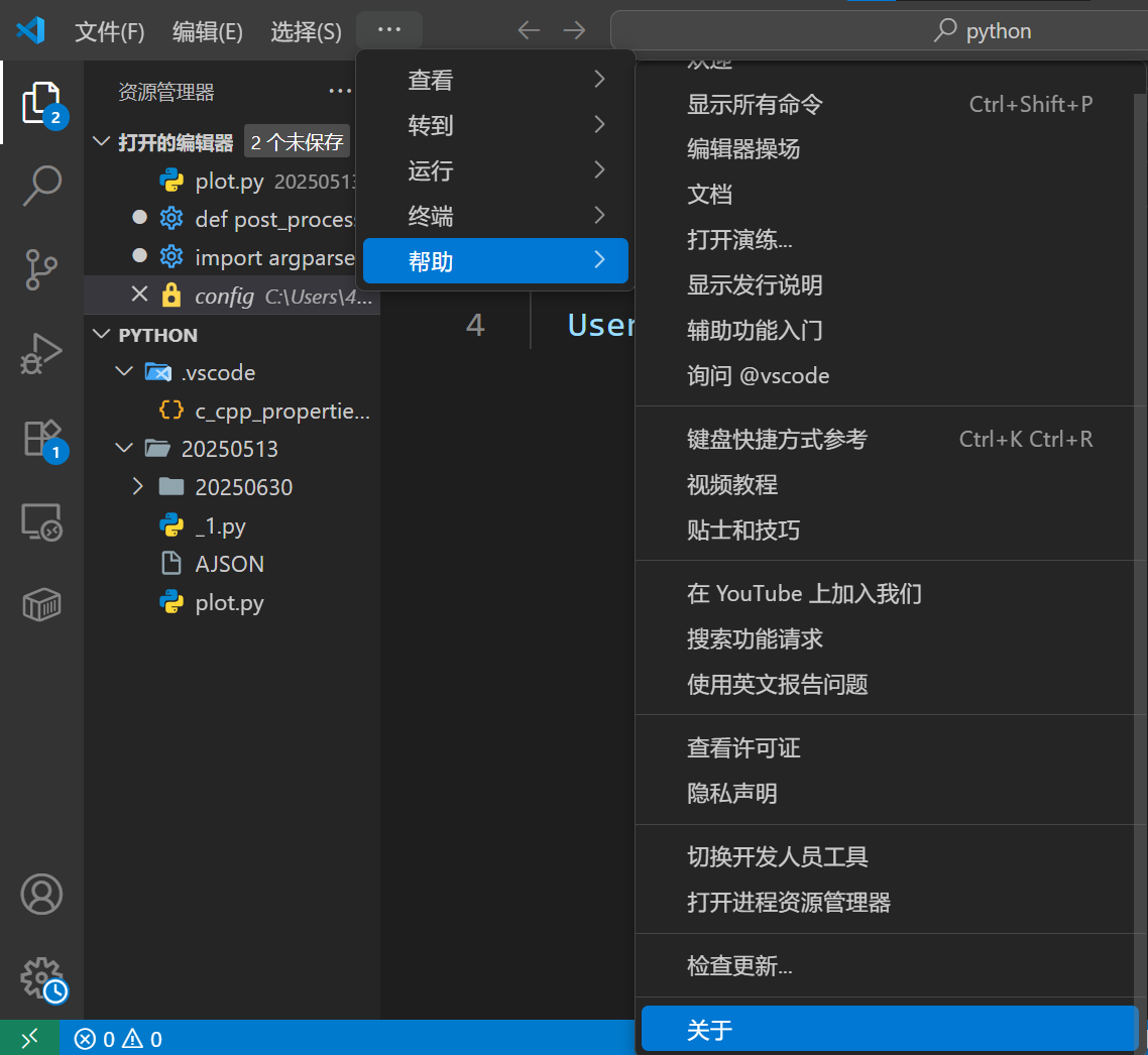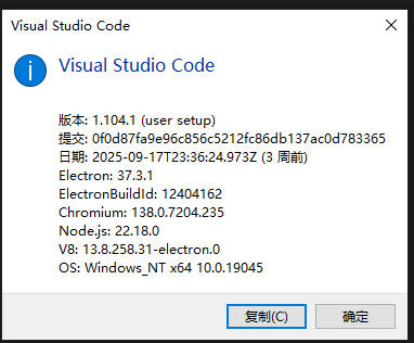 如果远程端不能联网可以下载包离线安装,下载 vscode-server 的 url 需要和 vscode 客户端版本的 commit-id 对应.通过 vscode 面板的帮助->关于可以获取该信息,复制信息,我当前版本如下(提交后面对应的就是 commit_id):