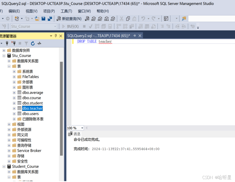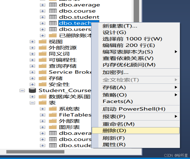 5. 使用MSSMS企业管理器删除表(实验指导书第73页)。