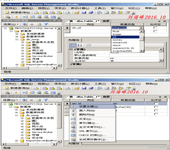 1.使用MSSMS的对象资源管理器以菜单命令方式创建表。
