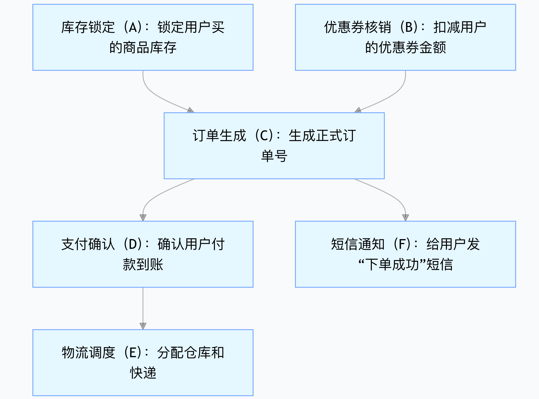短信通知(F) | 给用户发 “下单成功” 短信 | C(有订单号才能发) |