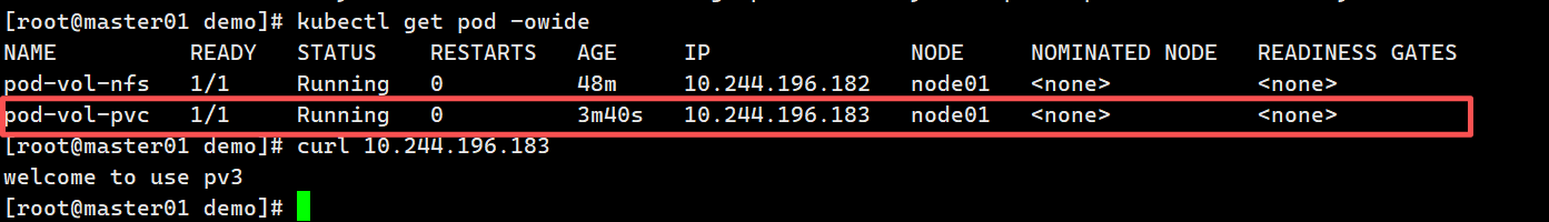 echo "welcome to use pv3" > index.htmlkubectl get pods -o widecurl 10.244.196.183