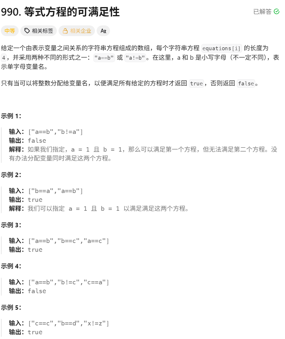 990. 等式方程的可满足性 - 力扣(LeetCode)