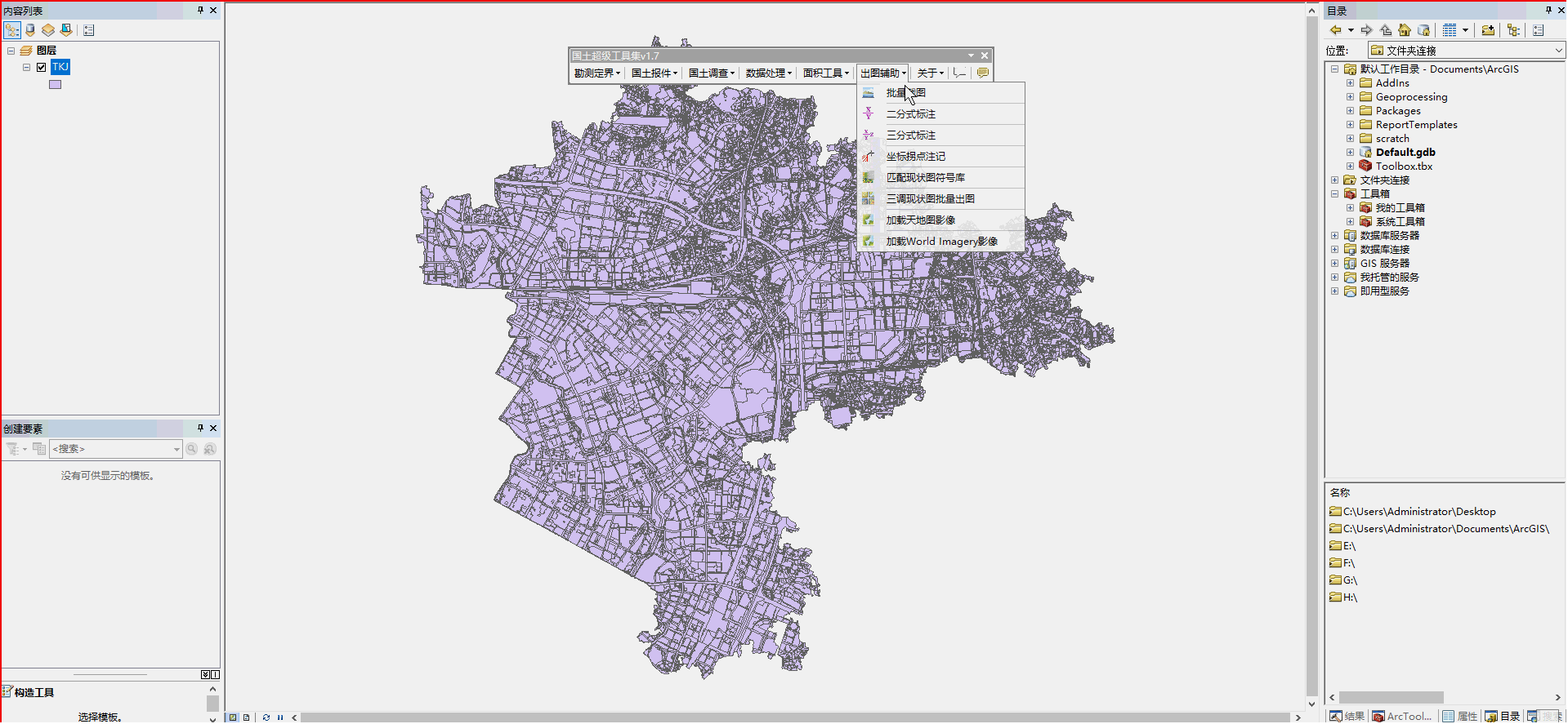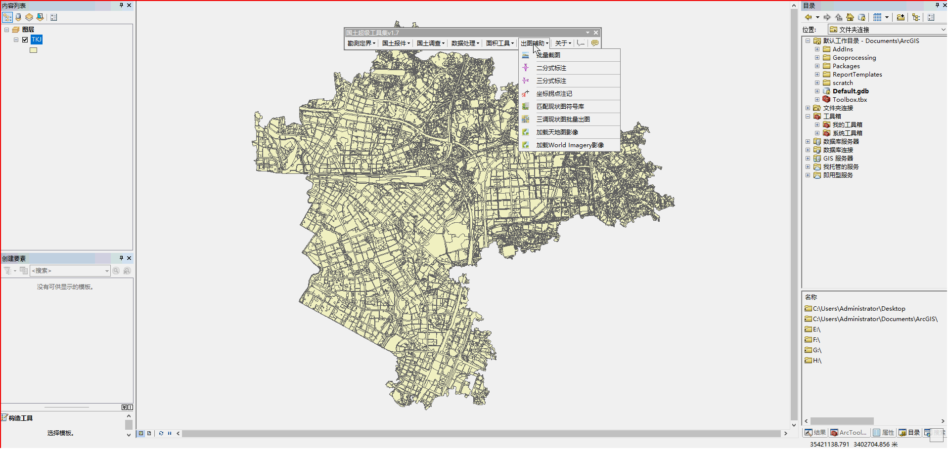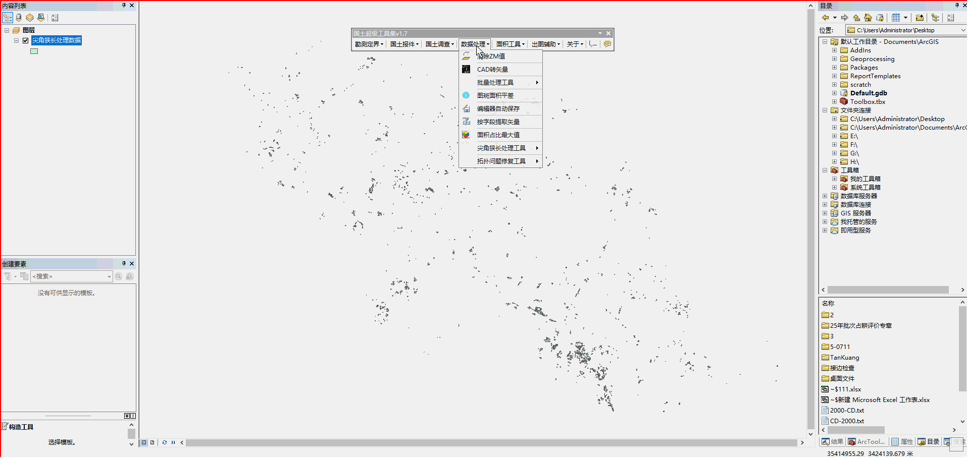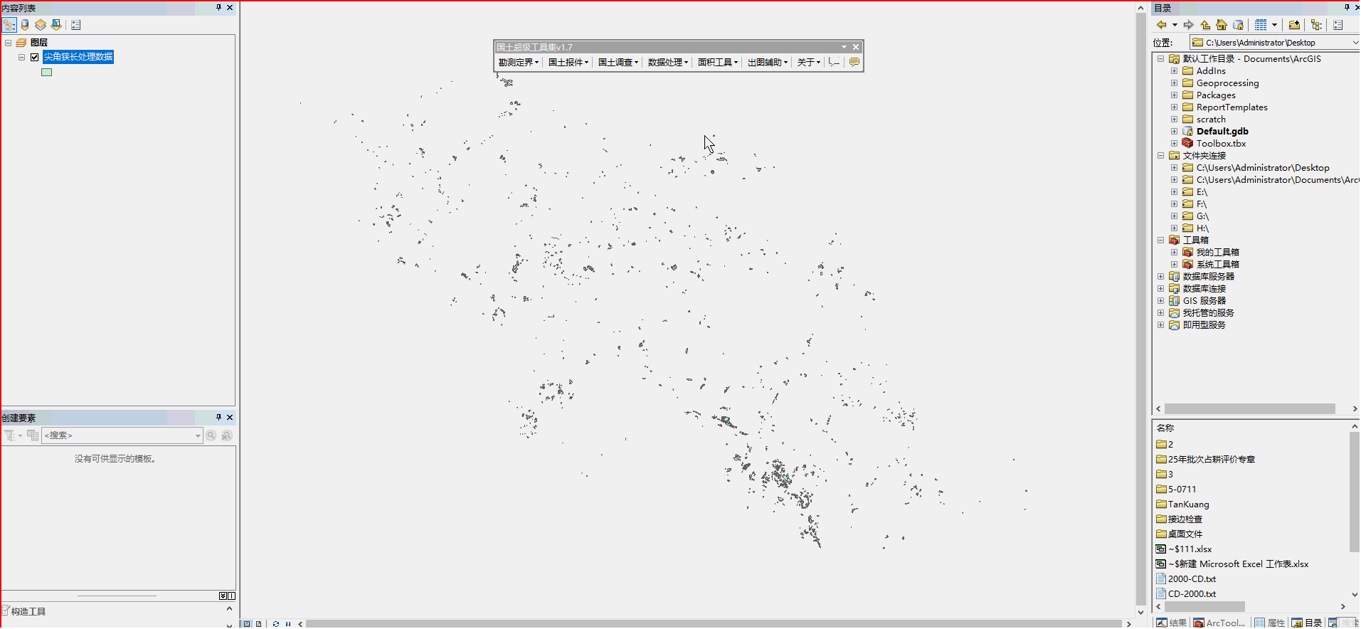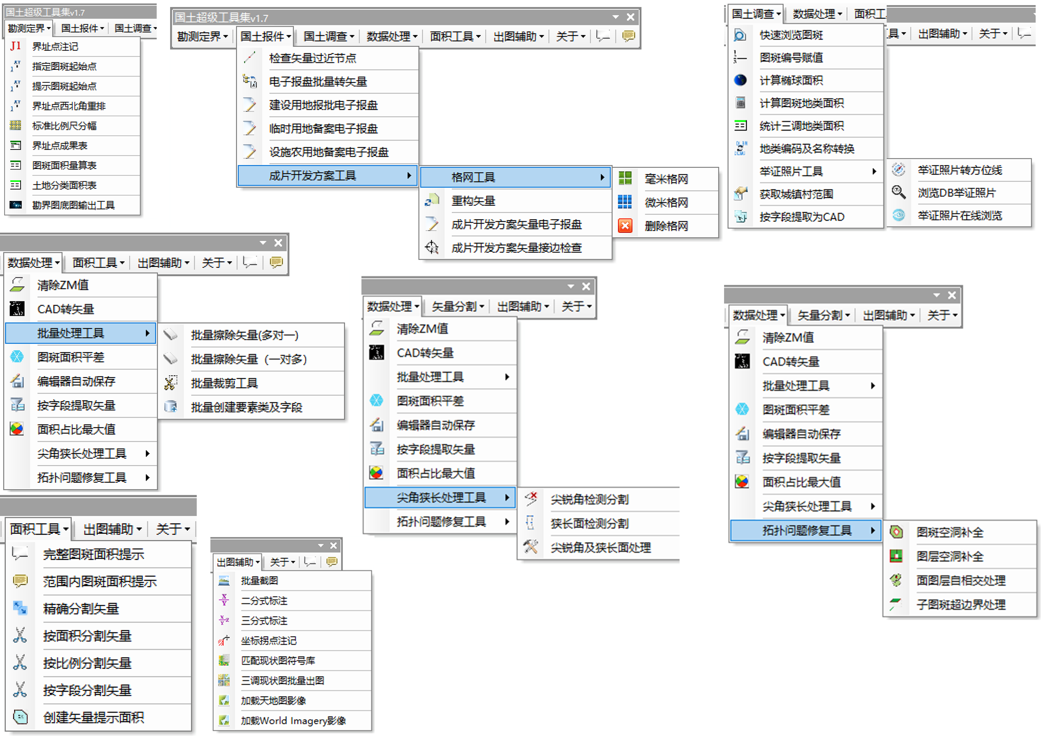 失踪人口回归啦!前几个月太忙了,没来得及更新工具集,ARCGIS国土超级工具集V1.7版本,功能已增加至63 个。本次更新在V1.6版本的基础上,除修复了使用时发现的若干问题外,还更新及新增了若干工具。其中勘测定界工具栏更新了界址点注记工具及土地分类面积表统计工具;国土调查工具栏新增了统计三调地类面积工具;数据处理工具栏更新了尖锐角检测分割工具及狭长面检测分割工具;出图辅助工具新增了匹配现状图符号及加载天地图影像2个工具。工具更新详细说明如下: