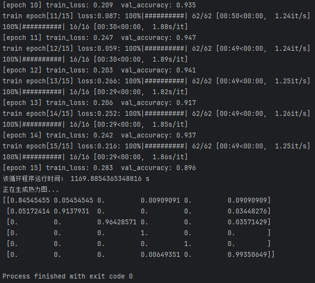 根据这个日志输出来看,VGG16 模型在训练过程中表现稳定,验证准确率最终达到 0.896,训练损失由 1.341 降至 0.283,在“红舌黄腻厚腻苔”和“紫舌苔”等类别上误分类较少;而 ResNet50 模型表现更为优异,验证准确率提升至 0.988,训练损失持续下降,几乎无误分类,整体分类精度和泛化能力显著优于 VGG16。