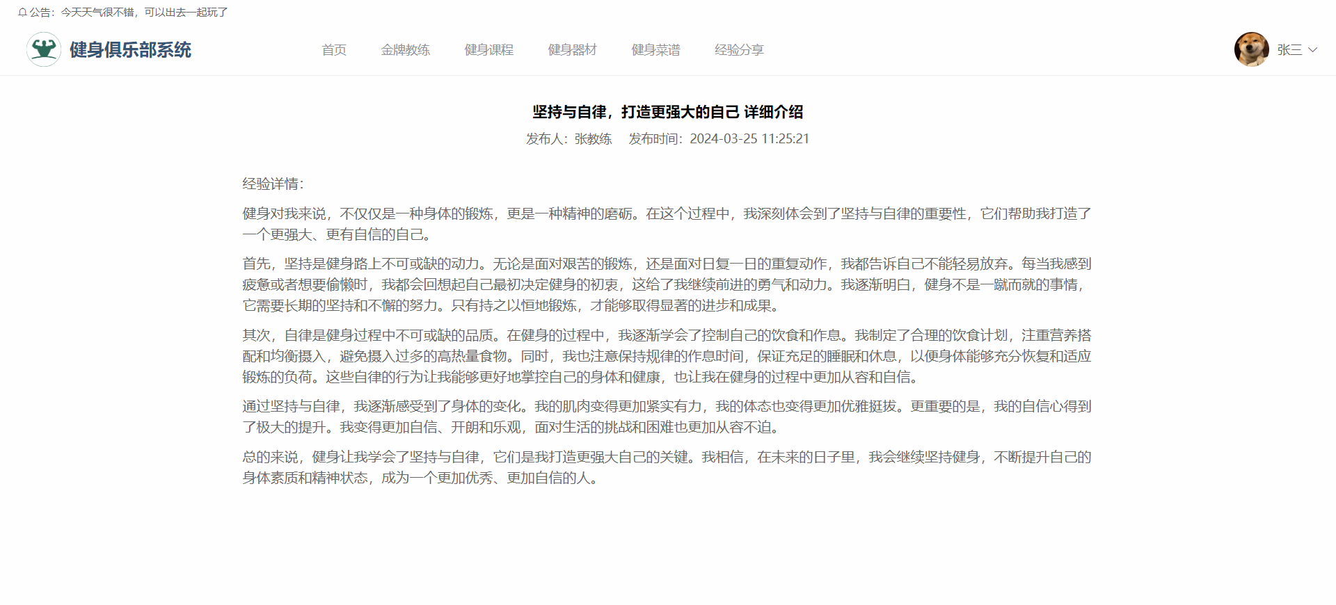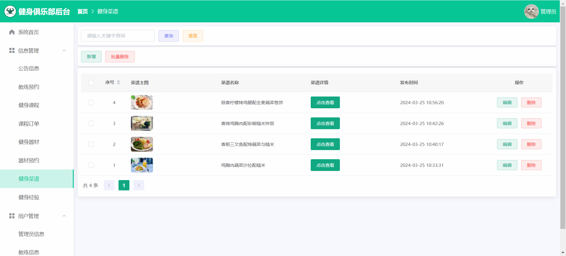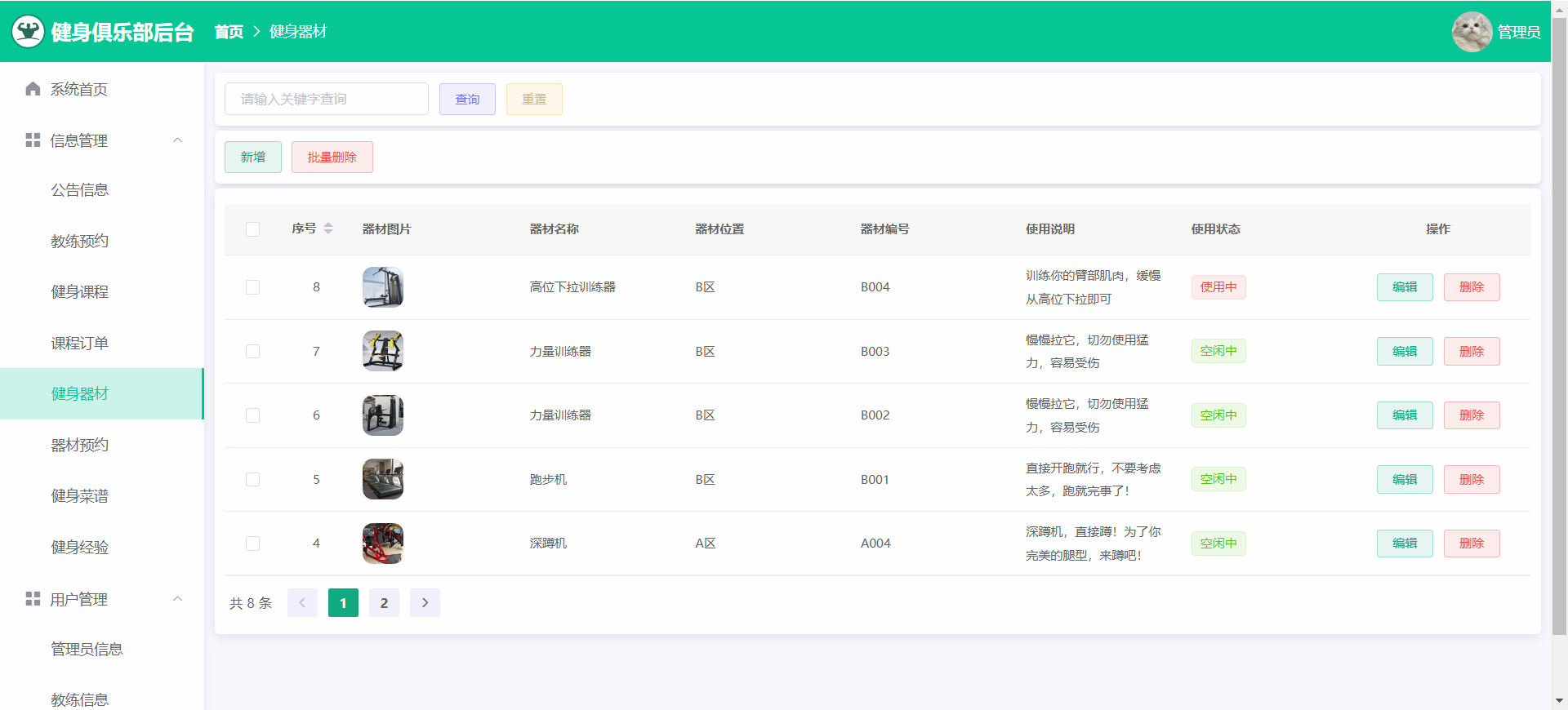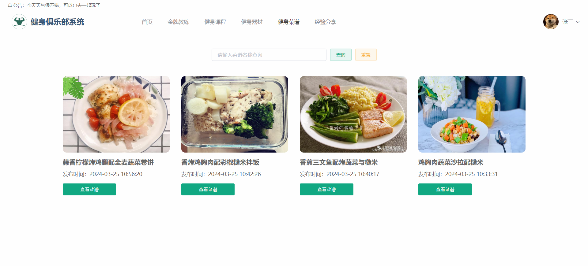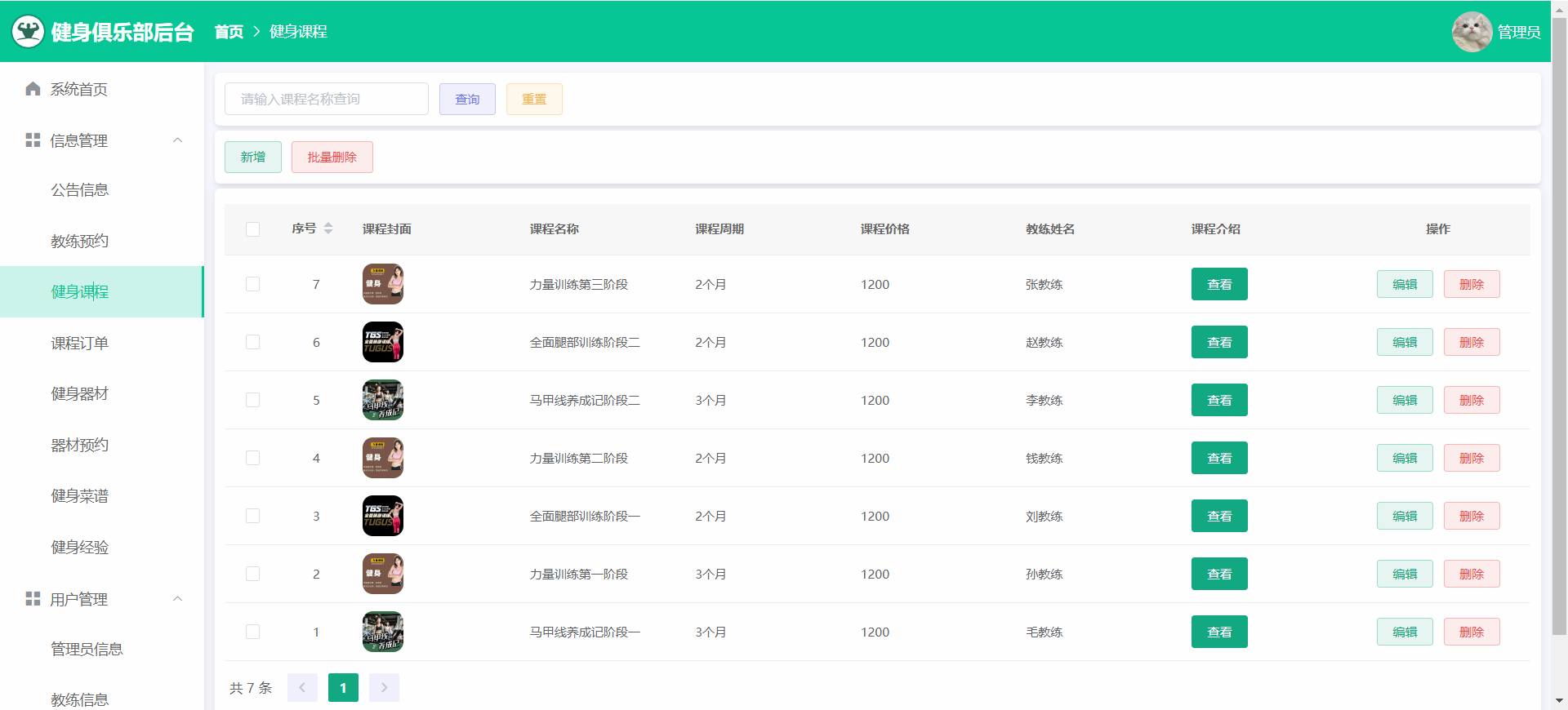 随着健康管理的需求日益增长,传统的健康管理模式已逐渐无法满足现代用户的多元化需求。尤其是在校园或社区环境中,如何高效管理健康数据、预约课程、器材等资源,以及如何为用户提供个性化的健康指导与服务,成为了提升健康管理水平的关键。本项目旨在基于SpringBoot技术架构,设计一套健身管理系统,面向管理员、教练与用户三个不同角色,提供便捷、高效、安全的健康管理平台。系统通过前后端分离的设计模式,确保了操作界面的简洁性与功能的高效性,同时也满足了不同用户的需求。