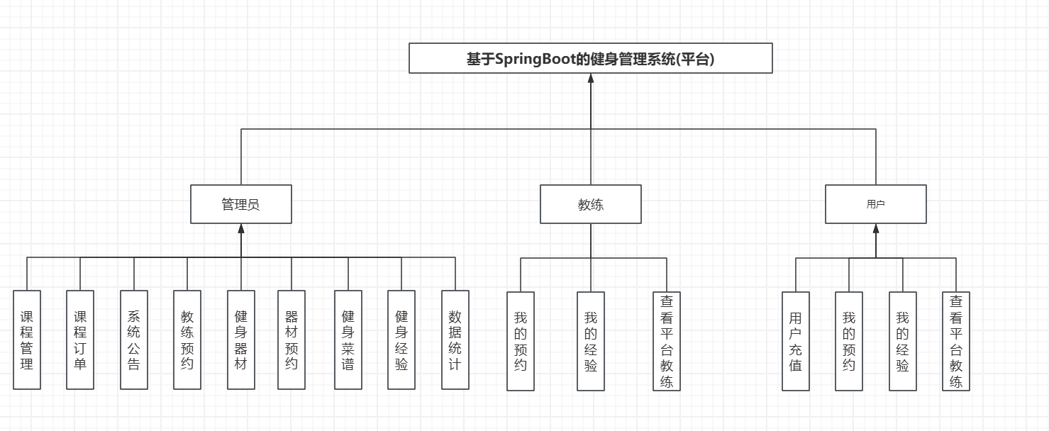 该系统分为管理员,教练,用户三大角色。管理员负责课程管理、系统公告、健身器材与材料预约等工作,能够有效协调与管理各项资源,确保平台的稳定运行。教练包括个人预约、经验管理、数据统计等功能,为教练提供便捷的工作环境。用户则有预约功能、个人经验记录、查看平台课程等服务,使用户能够根据个人需求选择合适的课程与健身器材,参与到健康管理中。该系统不仅提升了健康管理的效率,还促进了用户与教练之间的互动,为健康管理提供了数字化、智能化的解决方案。