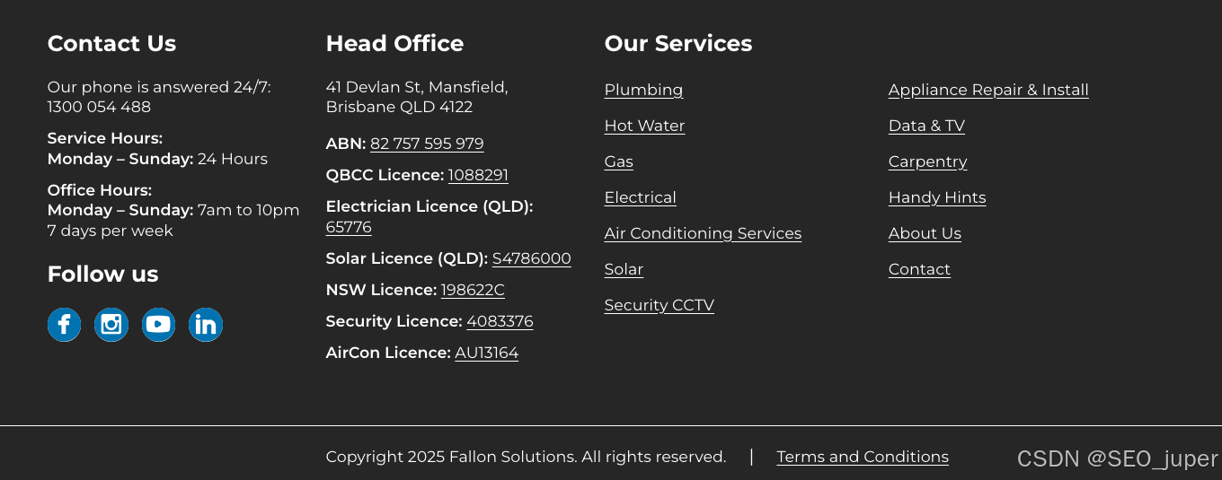 例如,以下是本地管道维修企业的简洁页脚设计:
