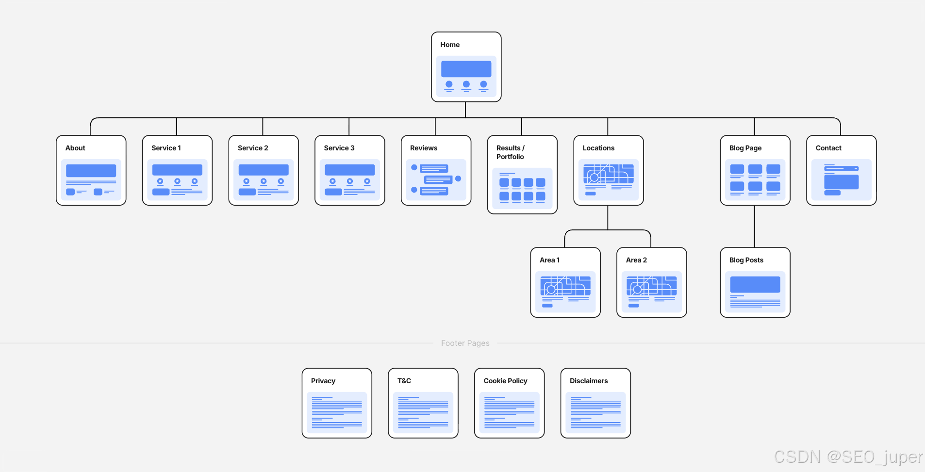 您可以通过可视化方式规划内部链接:将您认为可以相互关联的页面连接起来,即使它们来自网站的不同板块。