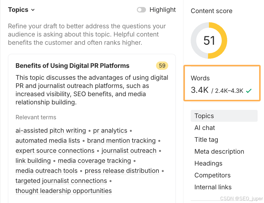 不确定页面内容篇幅?Ahrefs的AI内容助手等工具可根据当前排名数据,提供精准的字数建议。