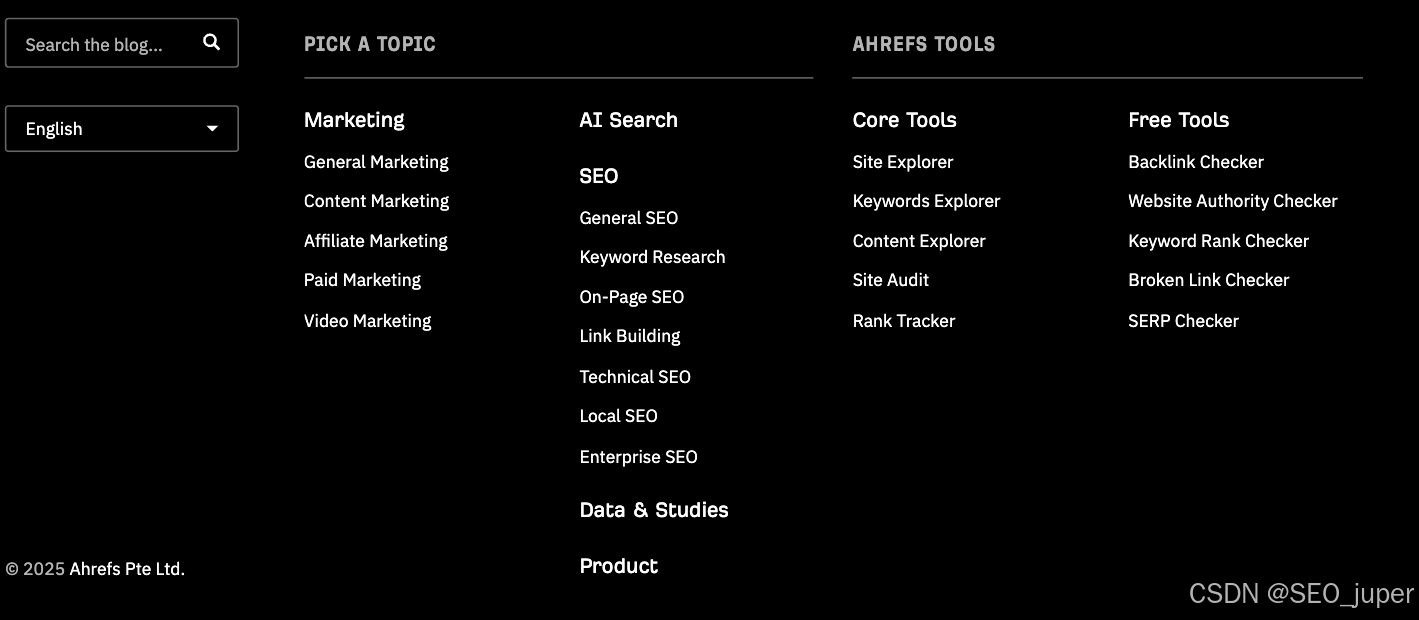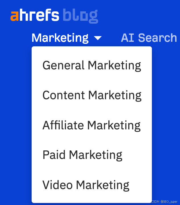 例如,Ahrefs当前的主导航呈现如下: