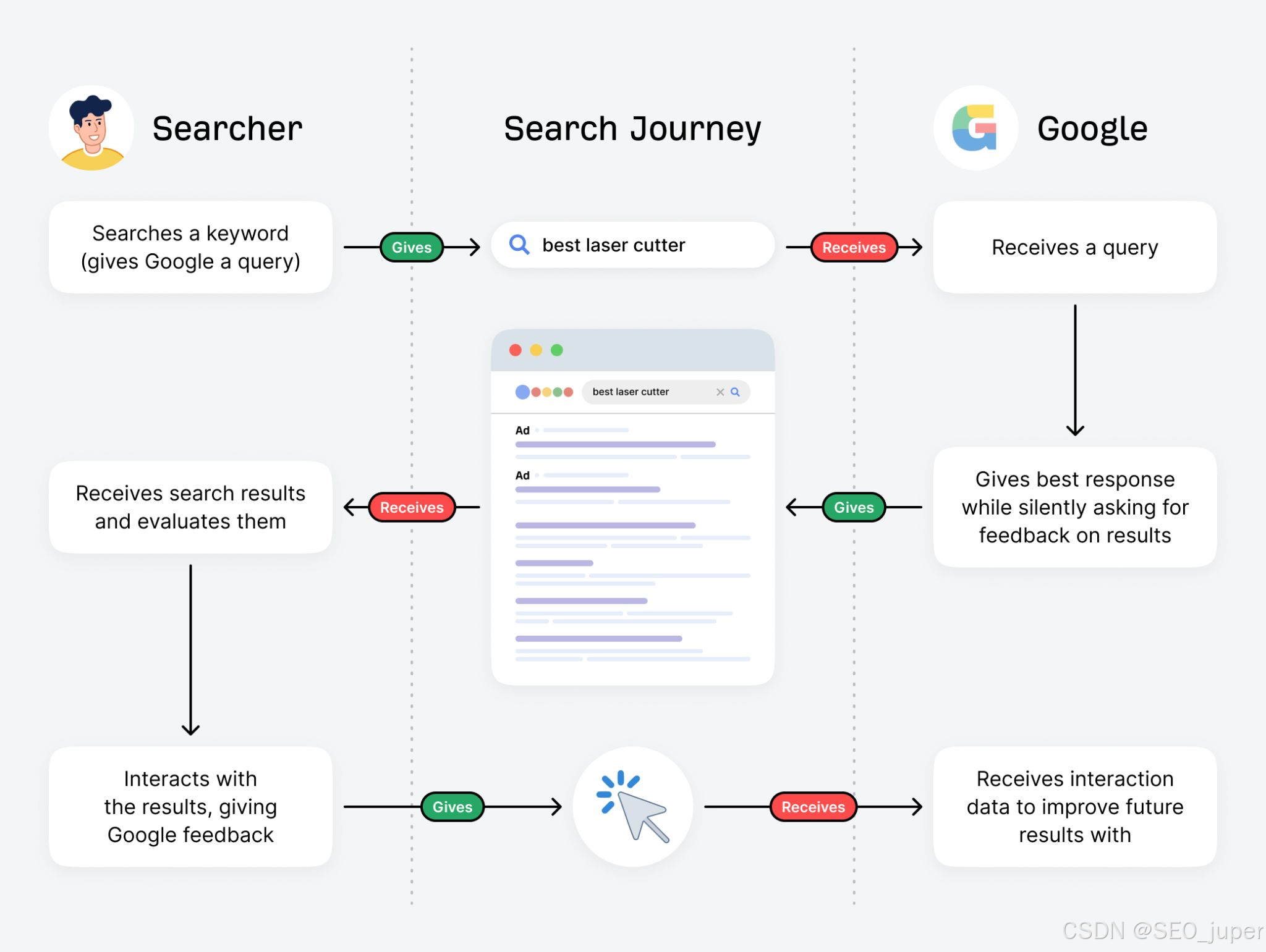 这些用户交互信号不会实时改变您的排名,但它们会训练学习排序模型——搜索引擎用于预测哪些结果能满足未来查询的机器学习框架。