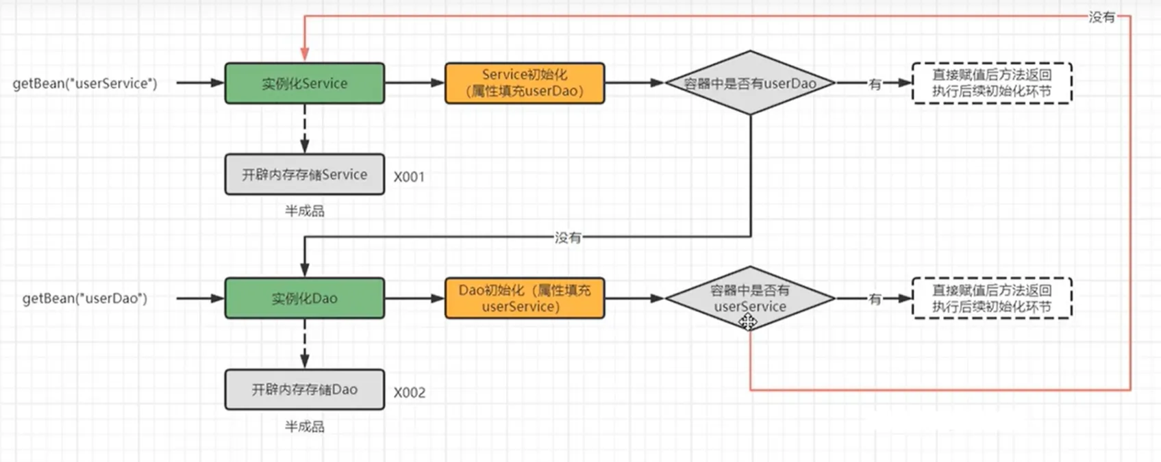 UserService和UserDao循环依赖的过程结合上述三级缓存描述一下