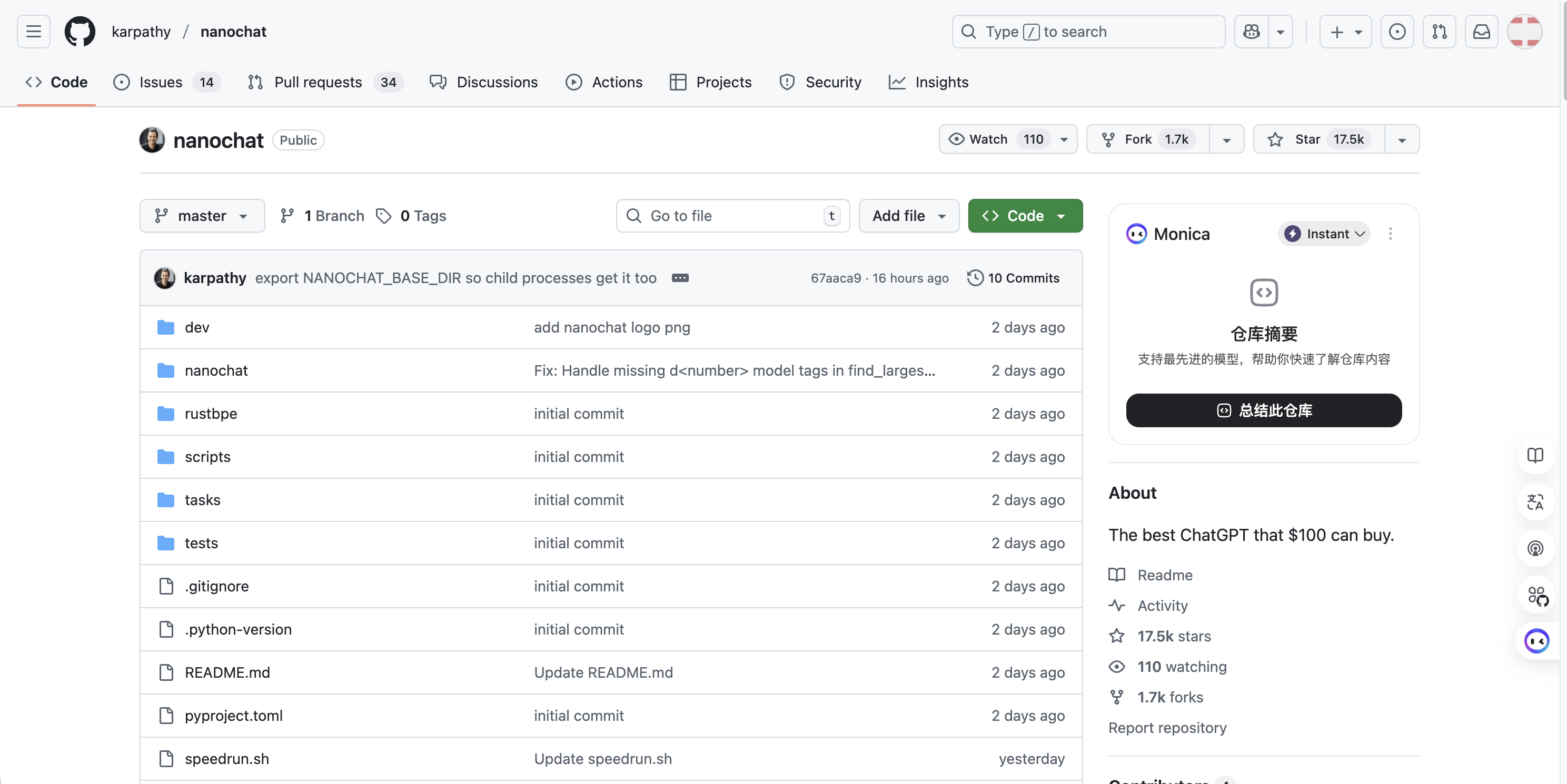 项目地址:https://github.com/karpathy/nanochat