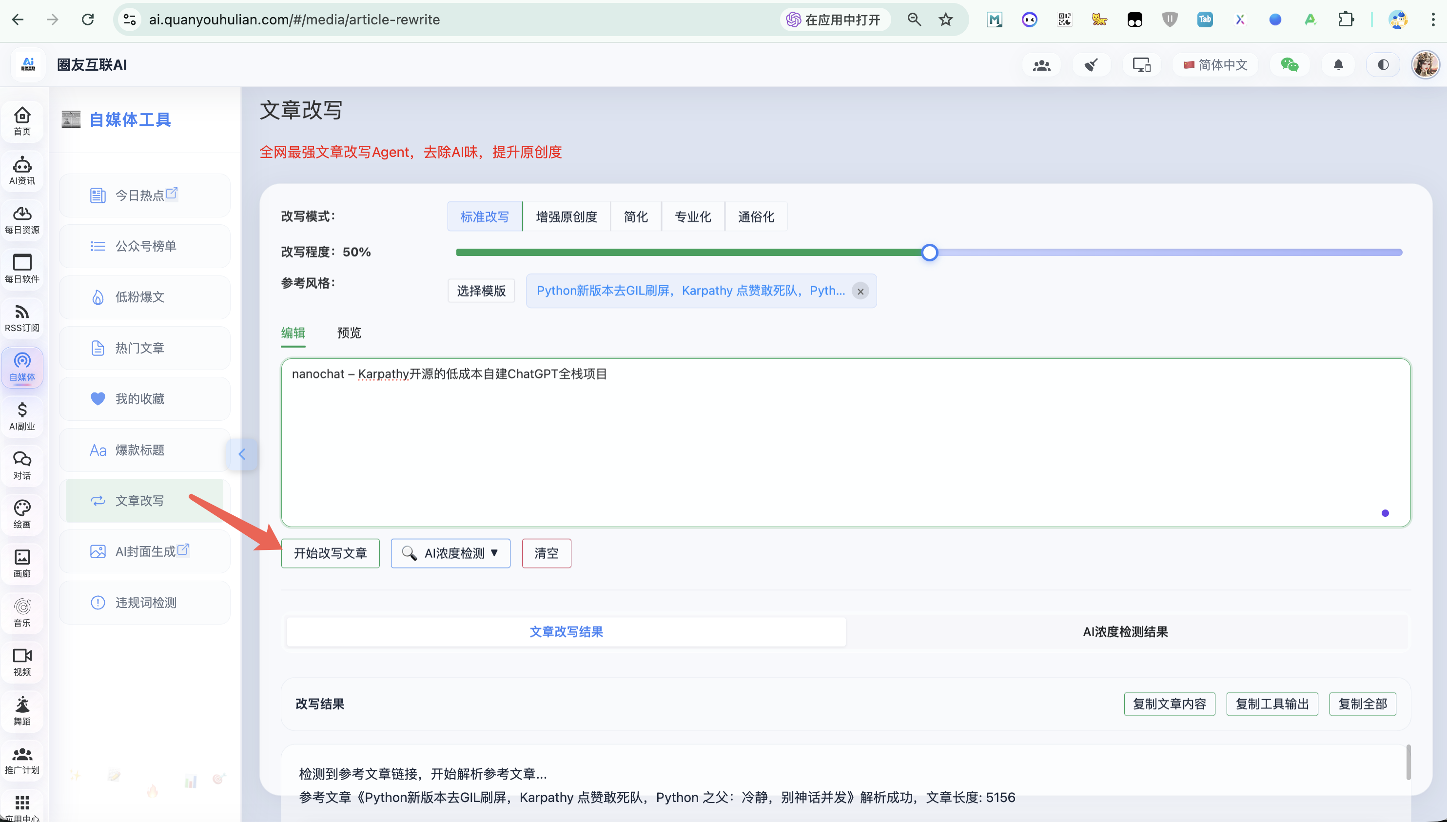 还可以做些私有化模型语料库,例如:博主最近开发的改写 Agent 就是用的自训练小模型,经过了大量 AI 浓度为 0 的文章进行词元拆解训练!