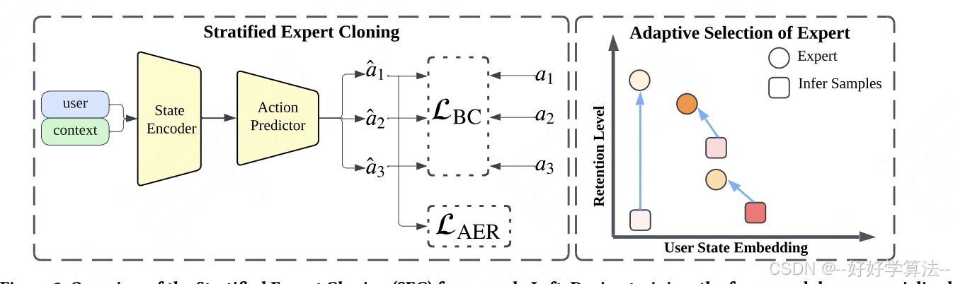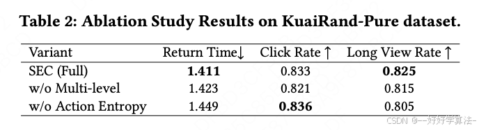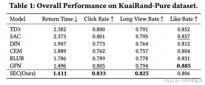 1.提出留存感知的模仿学习范式:不同于传统强化学习依赖奖励设计,SEC 直接利用高留存用户的行为数据作为专家示范,通过行为克隆学习推荐策略,规避了奖励稀疏和探索风险。