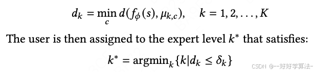 线上新用户状态 s 来了,系统用共享编码器 f_φ 生成 embedding,跟每层专家样本的 K-means 中心算距离,最近且不低于该用户历史留存档位的层被选中。
