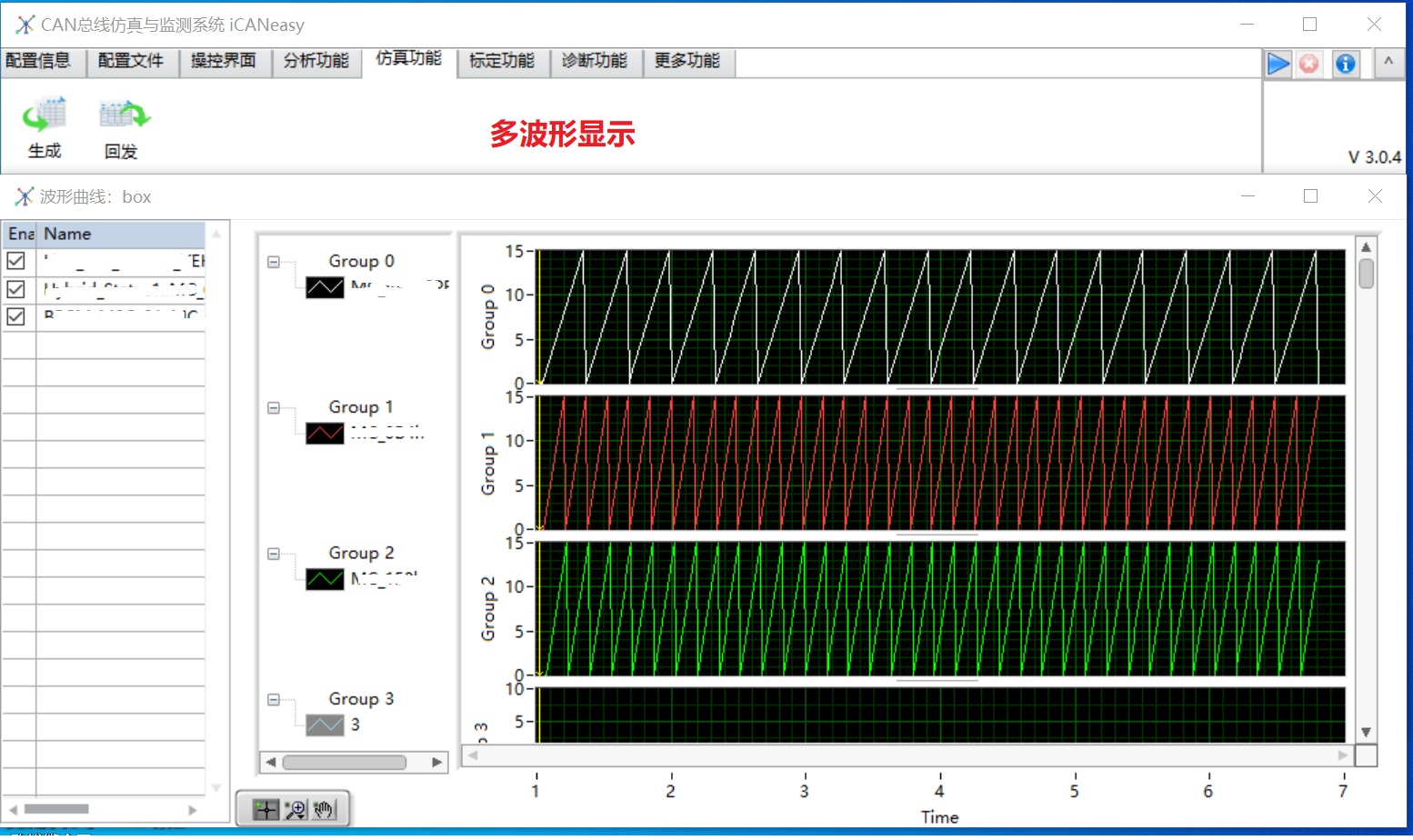 软件同时还具备数据监测分析功能,可以监测电池包进入相应工作状态时的各种特性,实时显示信号数值与波形曲线,并无损录制所有报文便于后期离线分析等。支持asc/blf/mdf4/csv等各种格式的数据存储、数值列表查看、波形曲线查看、阈值报警分析等功能。