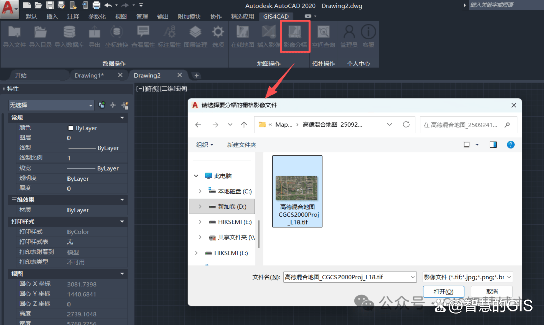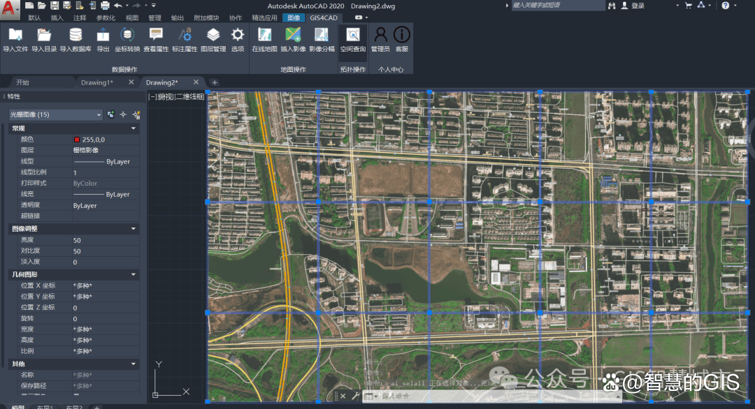 借助GIS4CAD插件,可以在AutoCAD中加载本地影像数据。(详见如何在AutoCAD中加载本地影像图?)但是,由于AutoCAD软件自身对于大图片加载的支持有限,当插入的影像文件过大时,会导致无法正常加载。因此,需要将单个大型影像文件进行分幅处理,然后将分幅后的多幅子影像全部添加,这样就可以确保正常加载本地大型影像图。