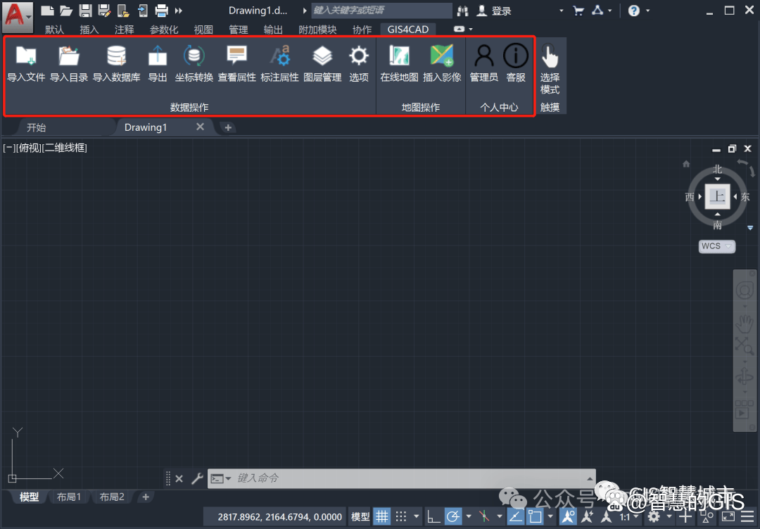 安装成功后在AutoCAD菜单栏的最后会多出一组GIS4CAD菜单项。