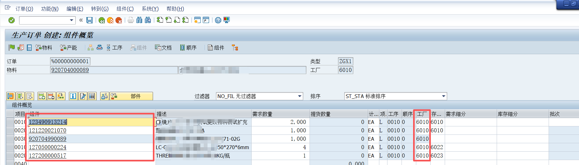 SAP PCE生产订单组件不能更改物料编码和工厂